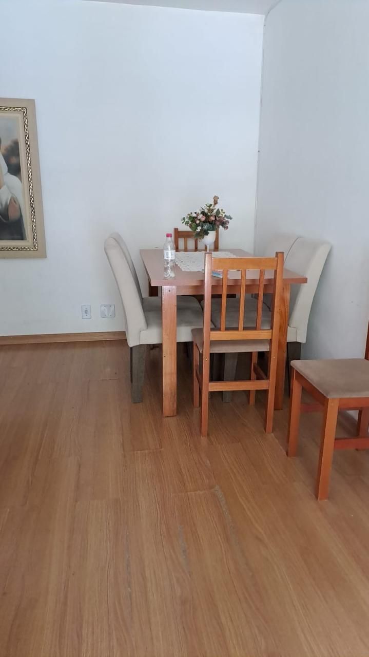 Apartamento de 63,84 m², 2 dormitórios, living para dois ambientes bem definidos, sacada, cozinha com área de serviço separada e 1 banheiro social.