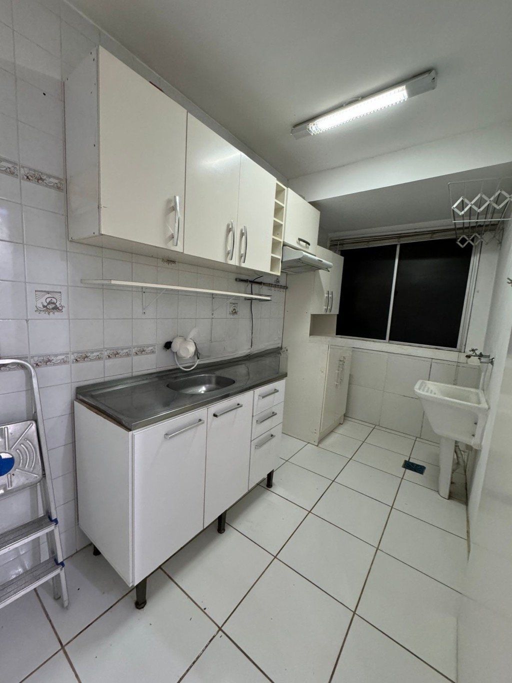 Apartamento semi mobiliado de 2 dormitórios com 41 metros privativos. Sala ampla dois ambientes com rebaixamento de gesso, luminárias e um rack. Cozinha com móveis planejados e área de serviço. Banheiro social com box de vidro e armários. Dois dormitórios com privacidade. 1 vaga de garagem coberta e escriturada. Sol da tarde.
