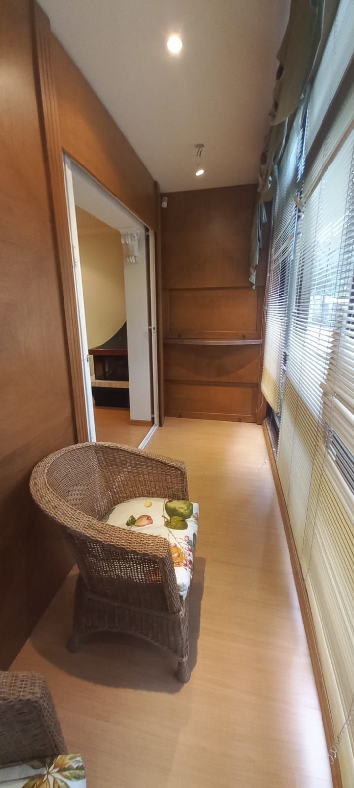 O imóvel está totalmente mobiliado e pronto para morar ou investir. Conta com dois dormitórios, sendo uma suíte, além de sala de estar e jantar integradas com lareira, sacada fechada com churrasqueira, cozinha funcional, banheiro social e uma vaga de garagem coberta. O imóvel possui aberturas em madeira, teto com acabamento em gesso e calefação.