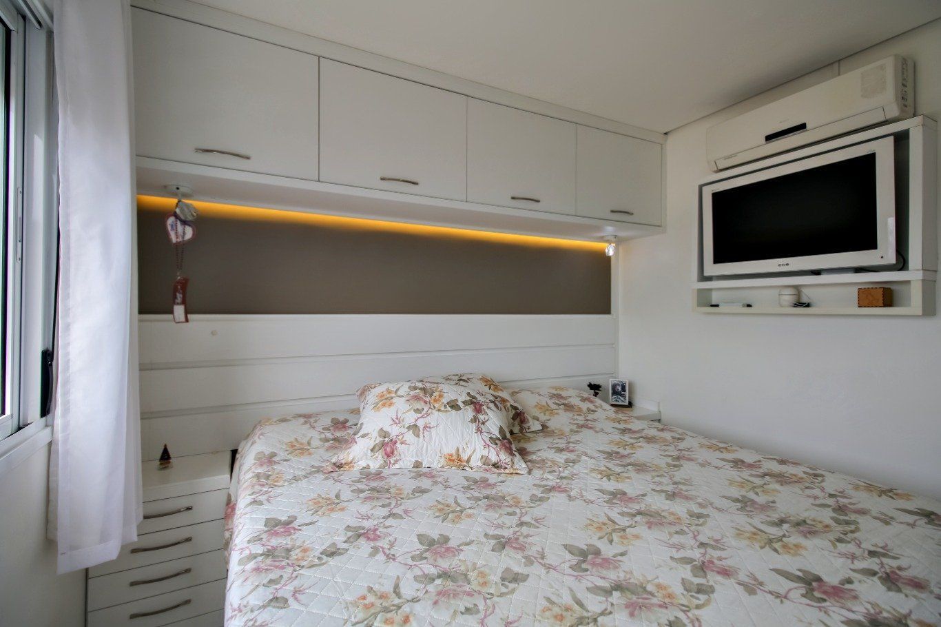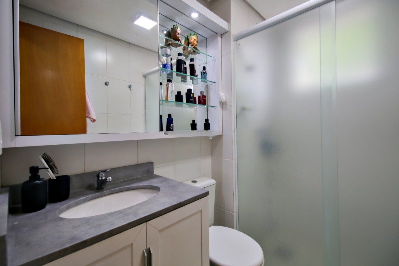 Apartamento com 76m², 2 quartos (1 suíte), churrasqueira, elevador, gás central e vaga de garagem.