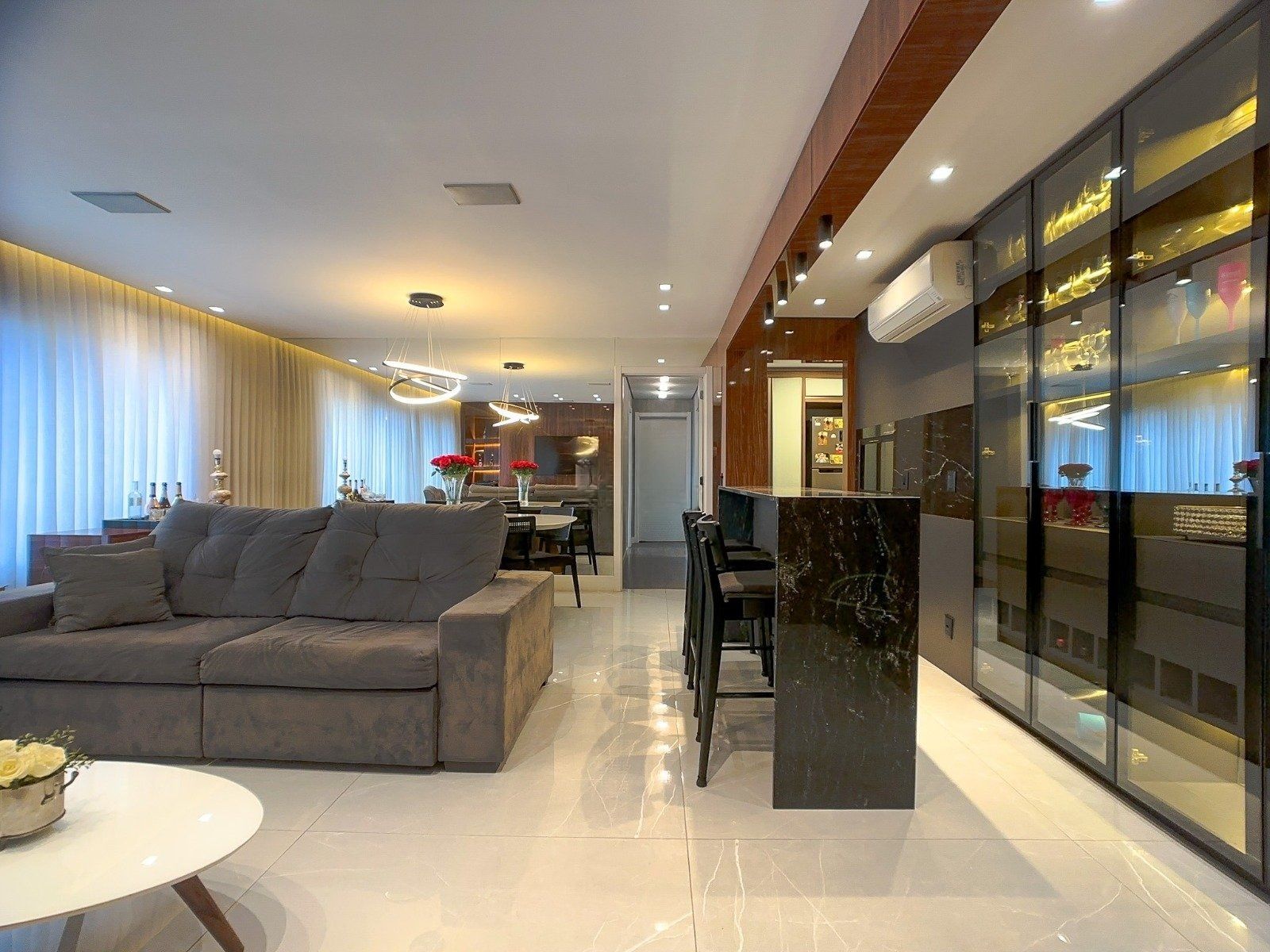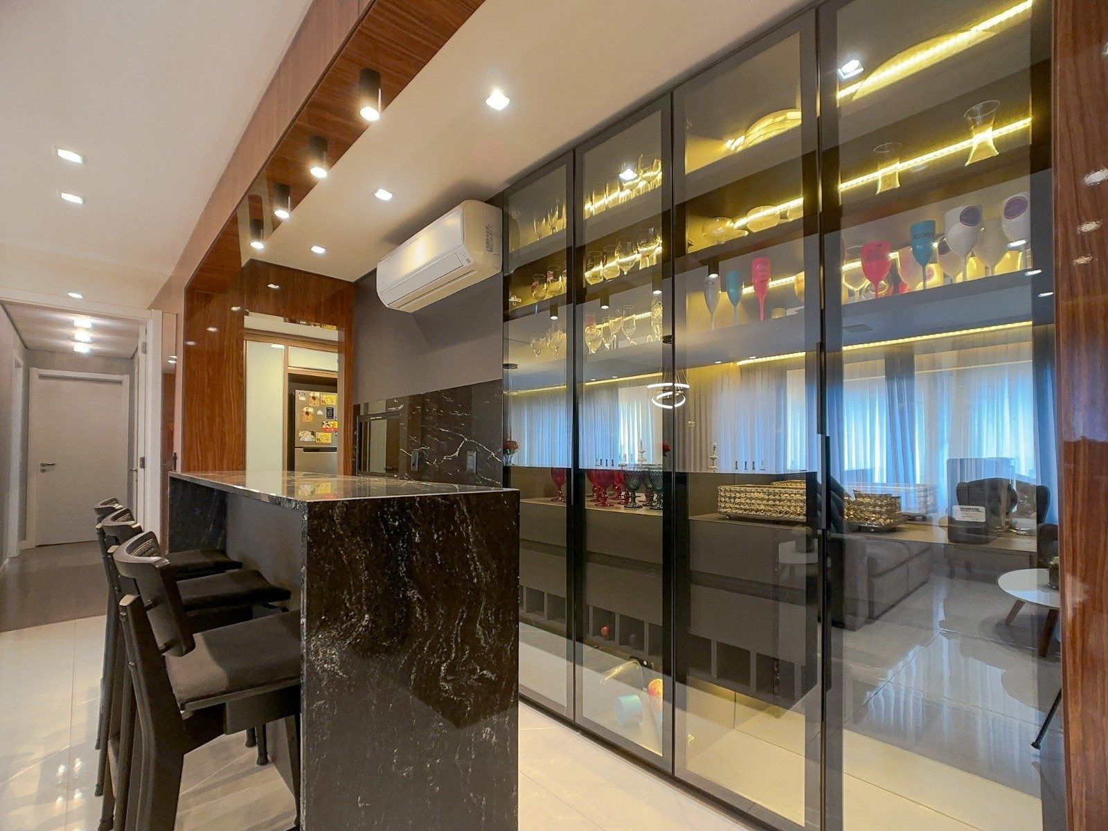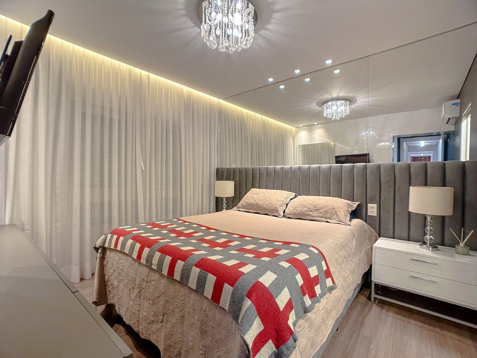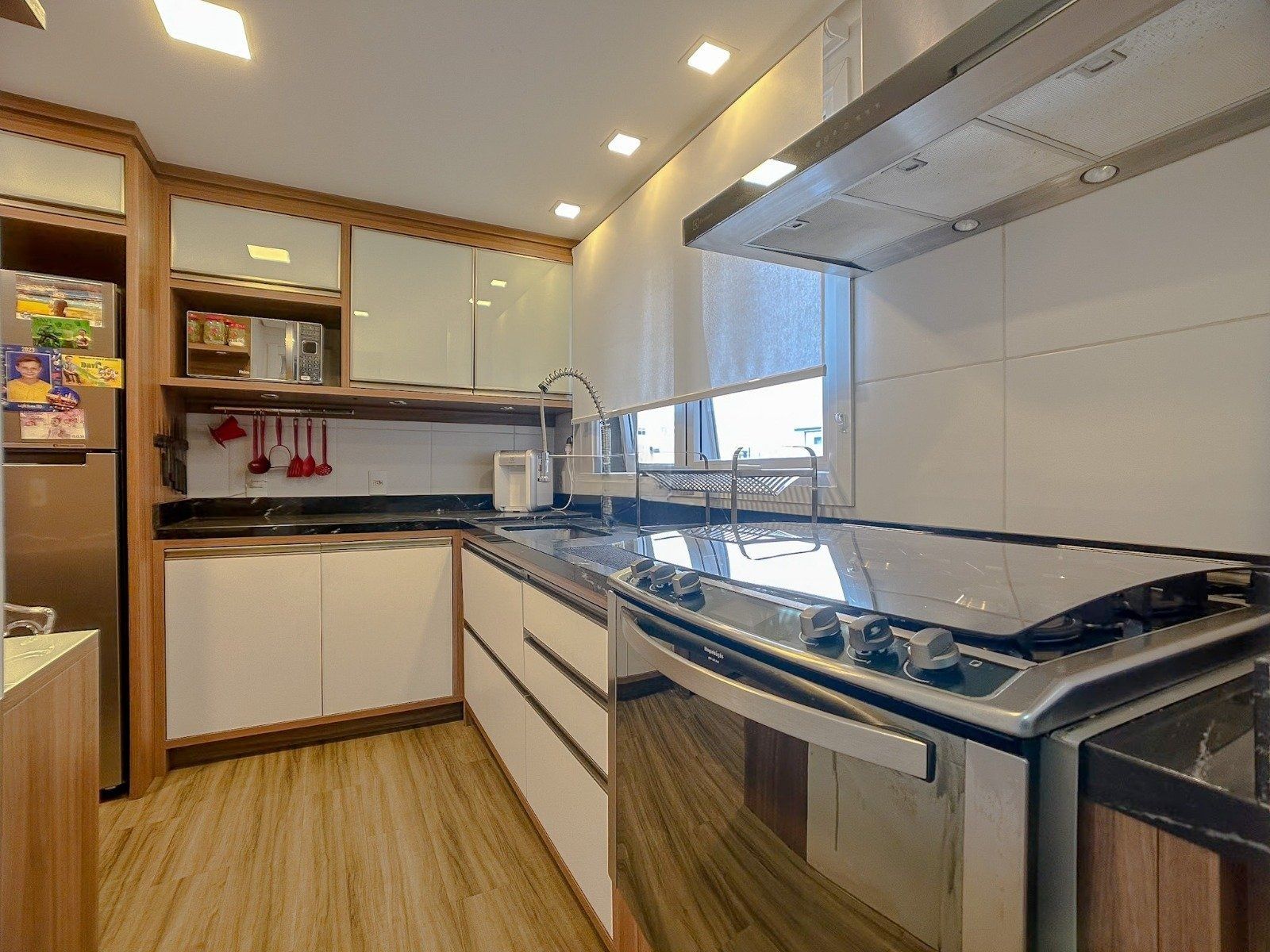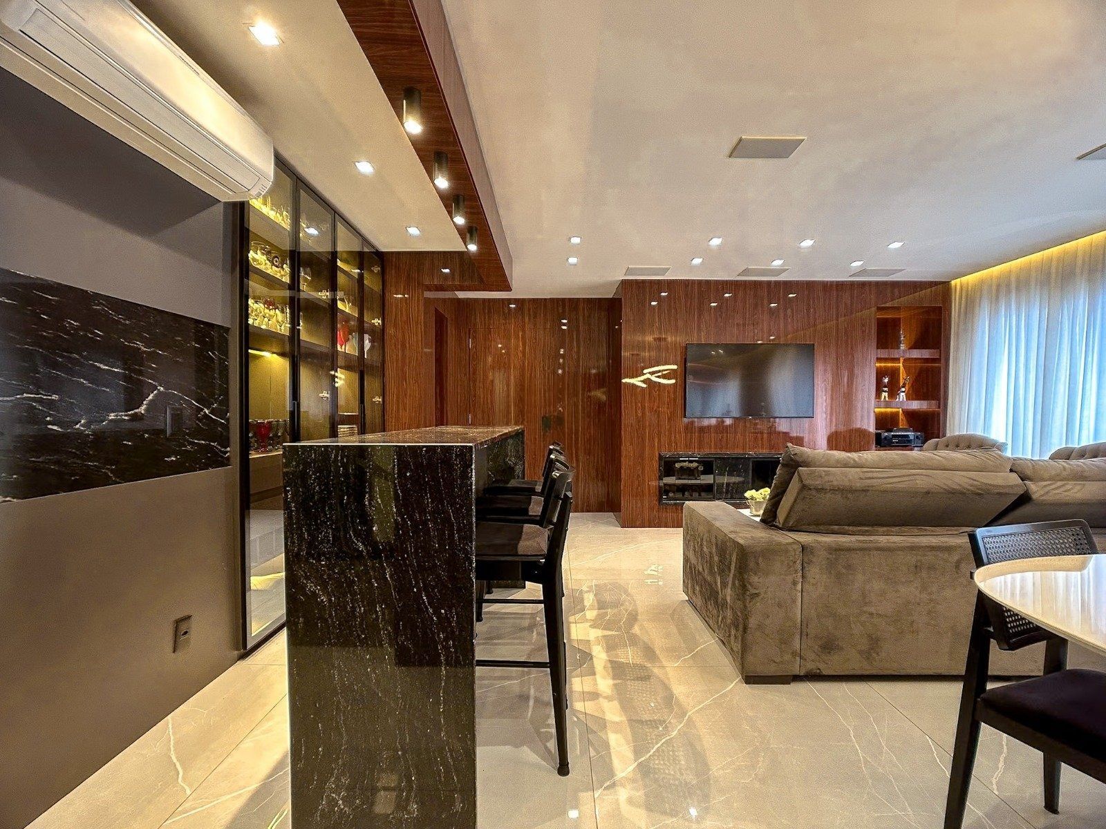 Este apartamento de 128m² privativos é semi mobiliado e conta com 3 suítes, lavabo, amplo living com lareira, espaço gourmet com churrasqueira, cozinha planejada, área de serviço e banheiro auxiliar. A unidade dispõe ainda de vaga dupla, coberta e escriturada.