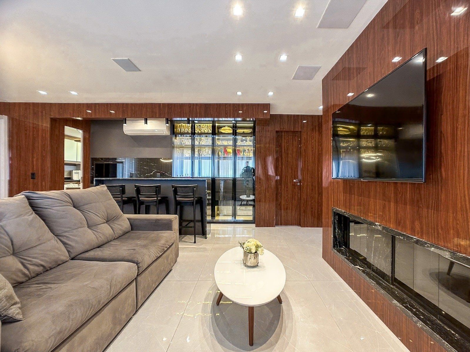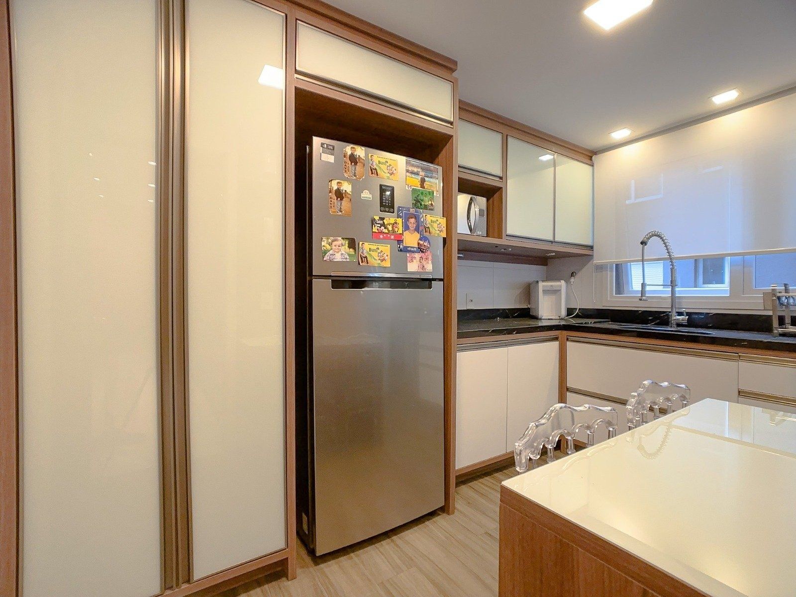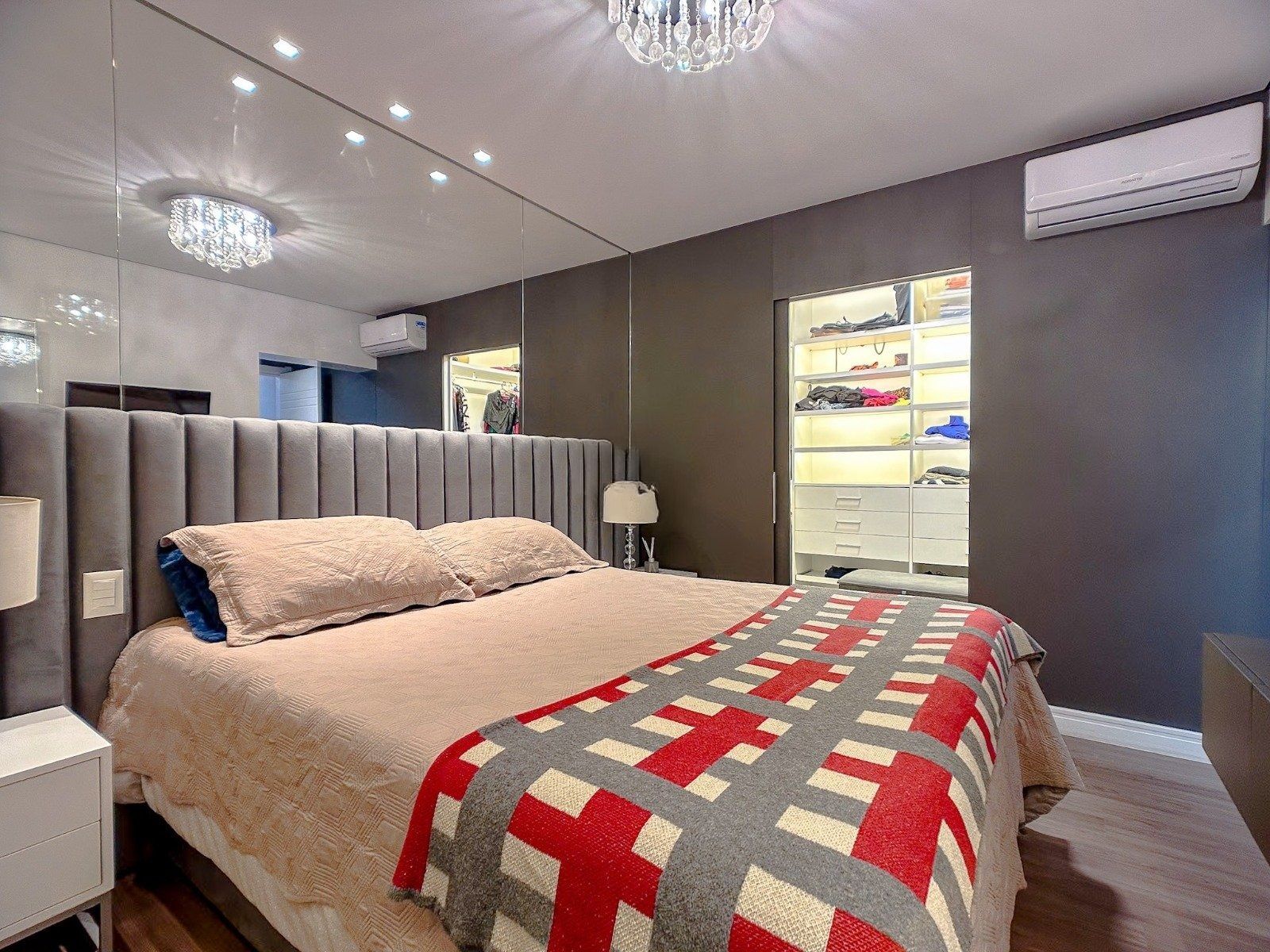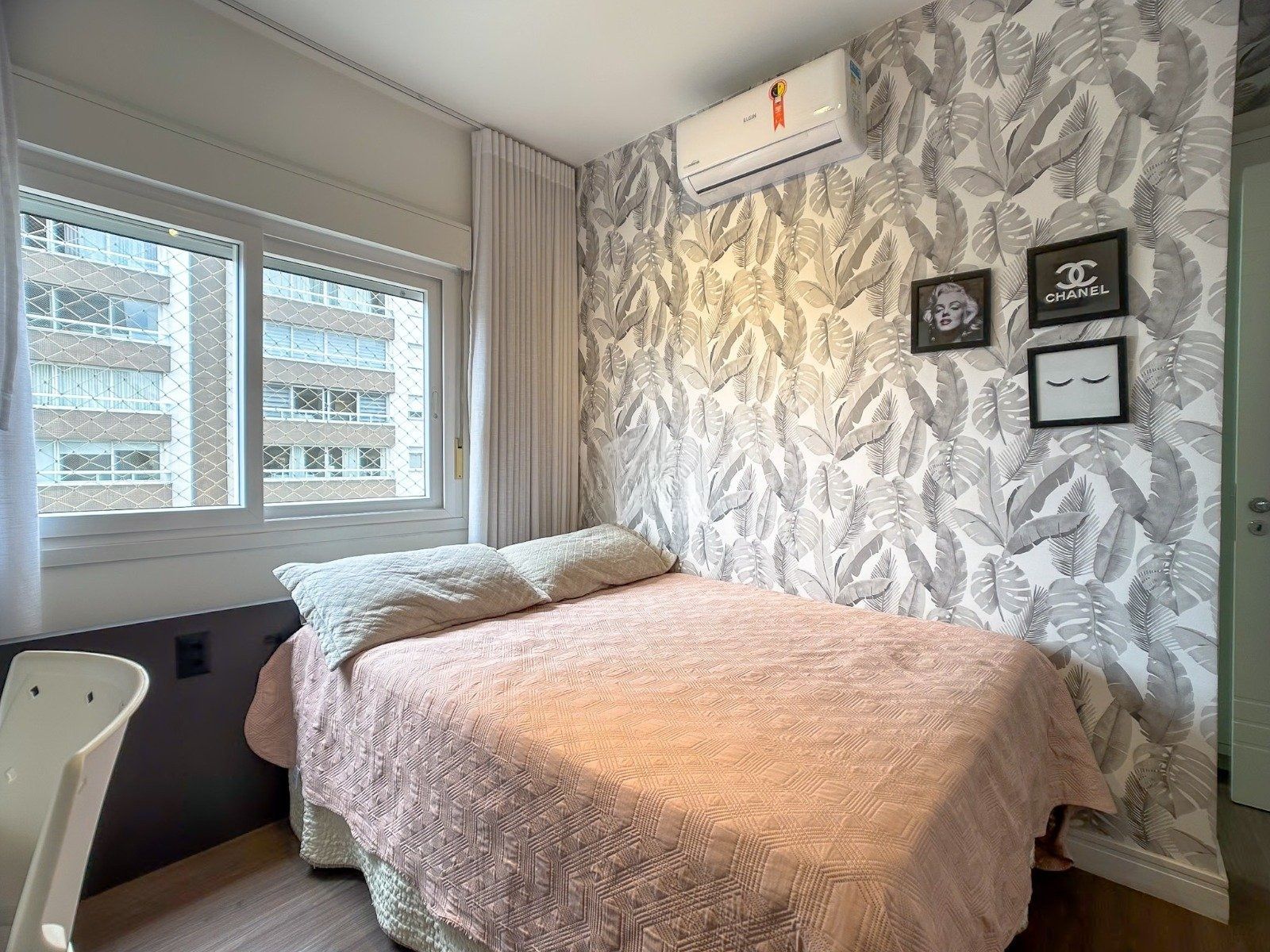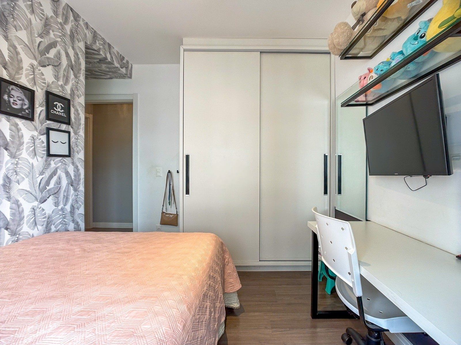 Este apartamento de 128m² privativos é semi mobiliado e conta com 3 suítes, lavabo, amplo living com lareira, espaço gourmet com churrasqueira, cozinha planejada, área de serviço e banheiro auxiliar. A unidade dispõe ainda de vaga dupla, coberta e escriturada.