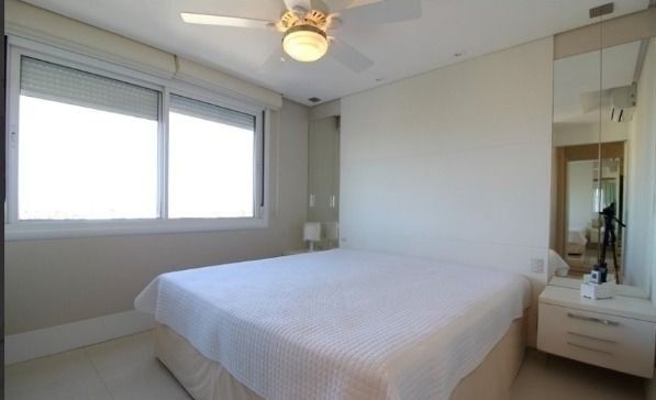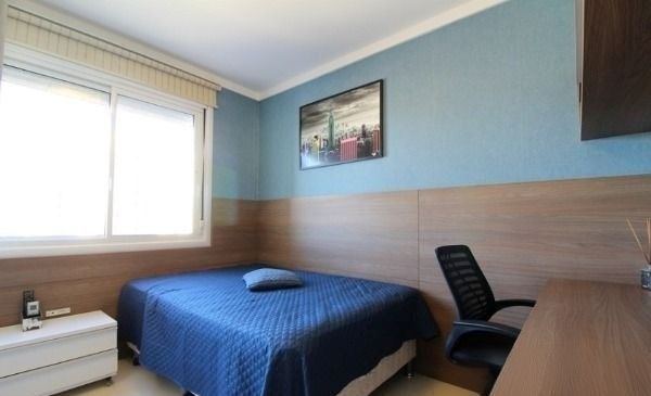 Apartamento finamente mobiliado à venda no bairro Jardim Europa, em Porto Alegre, localizado na Rua Dr. João Satt, nº 25. O imóvel encontra-se em excelente estado de conservação e possui três dormitórios, sendo uma suíte, living amplo e muito bem iluminado, com teto revestido em sanca de gesso nas laterais, sala de jantar integrada, churrasqueira, escritório, cozinha completa, área de serviço com aquecedor, banheiro social e lavabo. Conta ainda com três aparelhos de ar-condicionado tipo split, piso em porcelanato, está situado em andar alto, é ensolarado e oferece uma belíssima vista panorâmica.