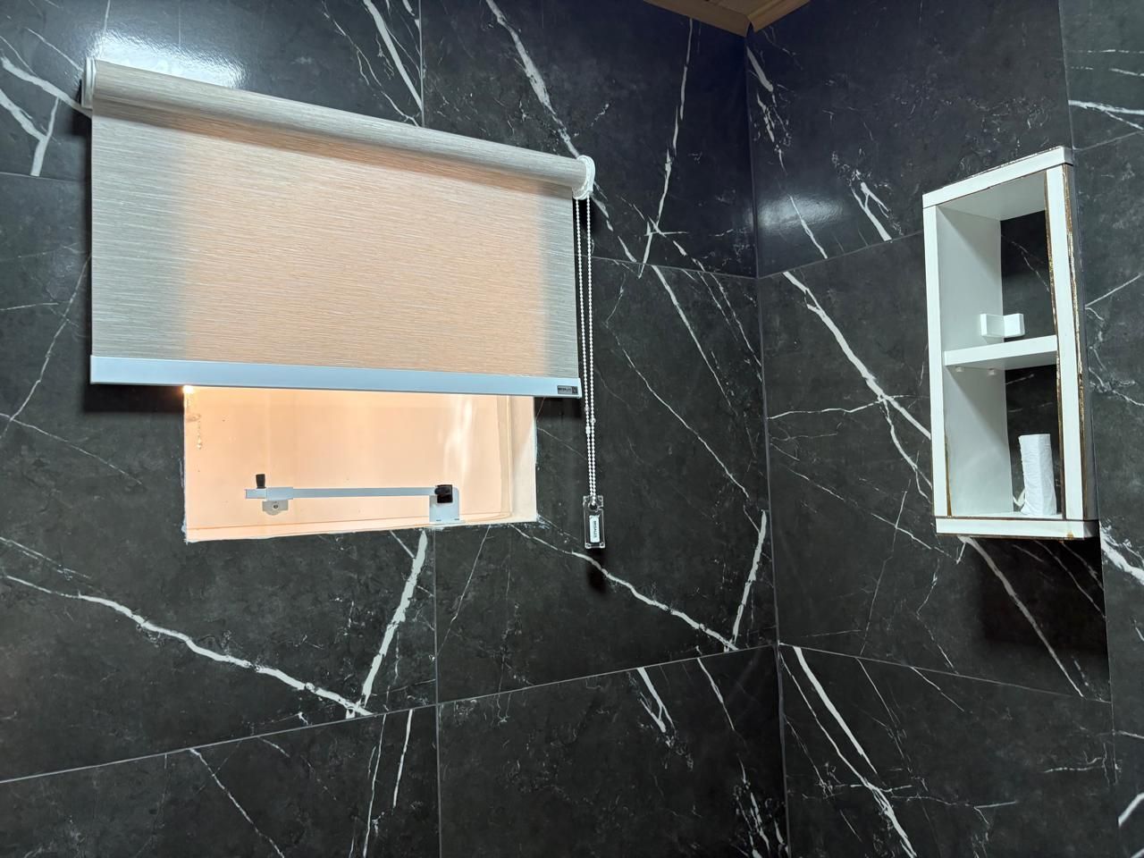 Piso em porcelanato, fechada com vidros na frente e atrás da loja.