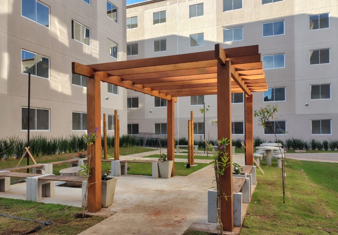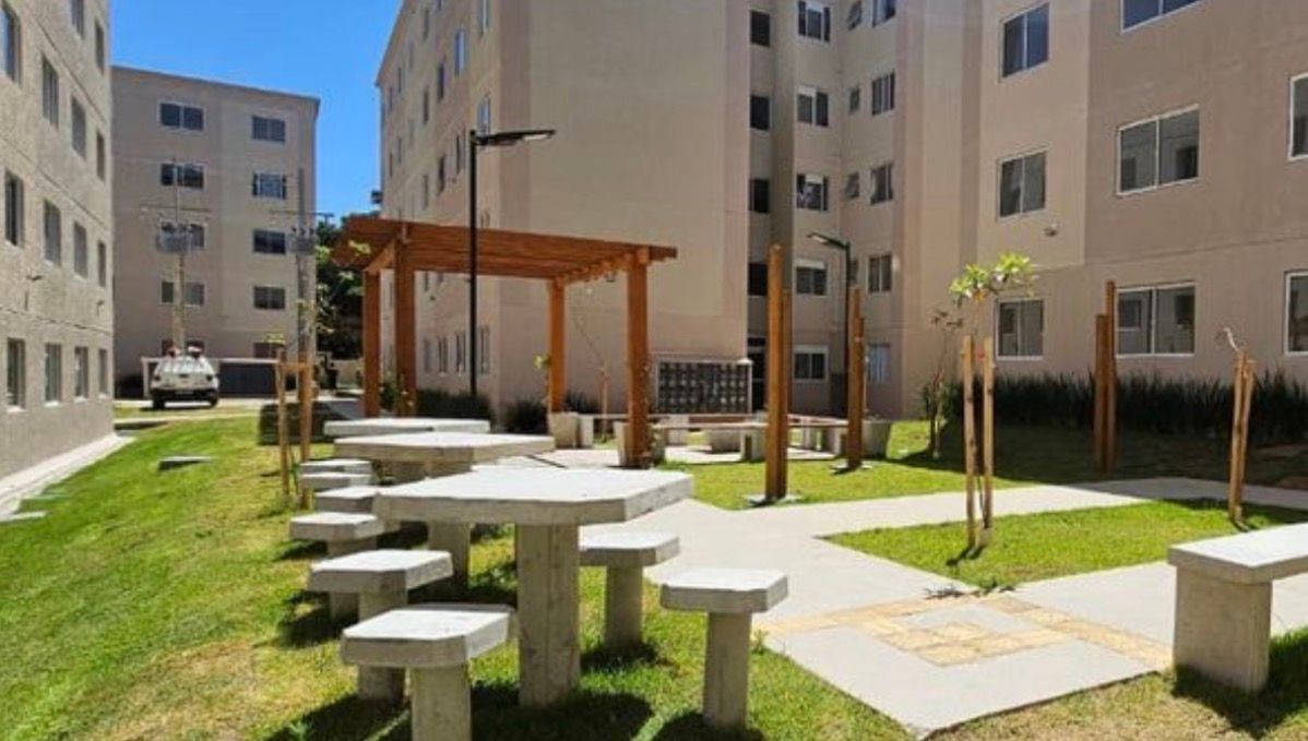 O imóvel conta com 2 quartos, sala de estar, jantar e cozinha funcional integradas, fica no terceiro andar prédio com 5 andares, o condomínio oferece salão de festas, espaço gourmet, playground, espaço pet.