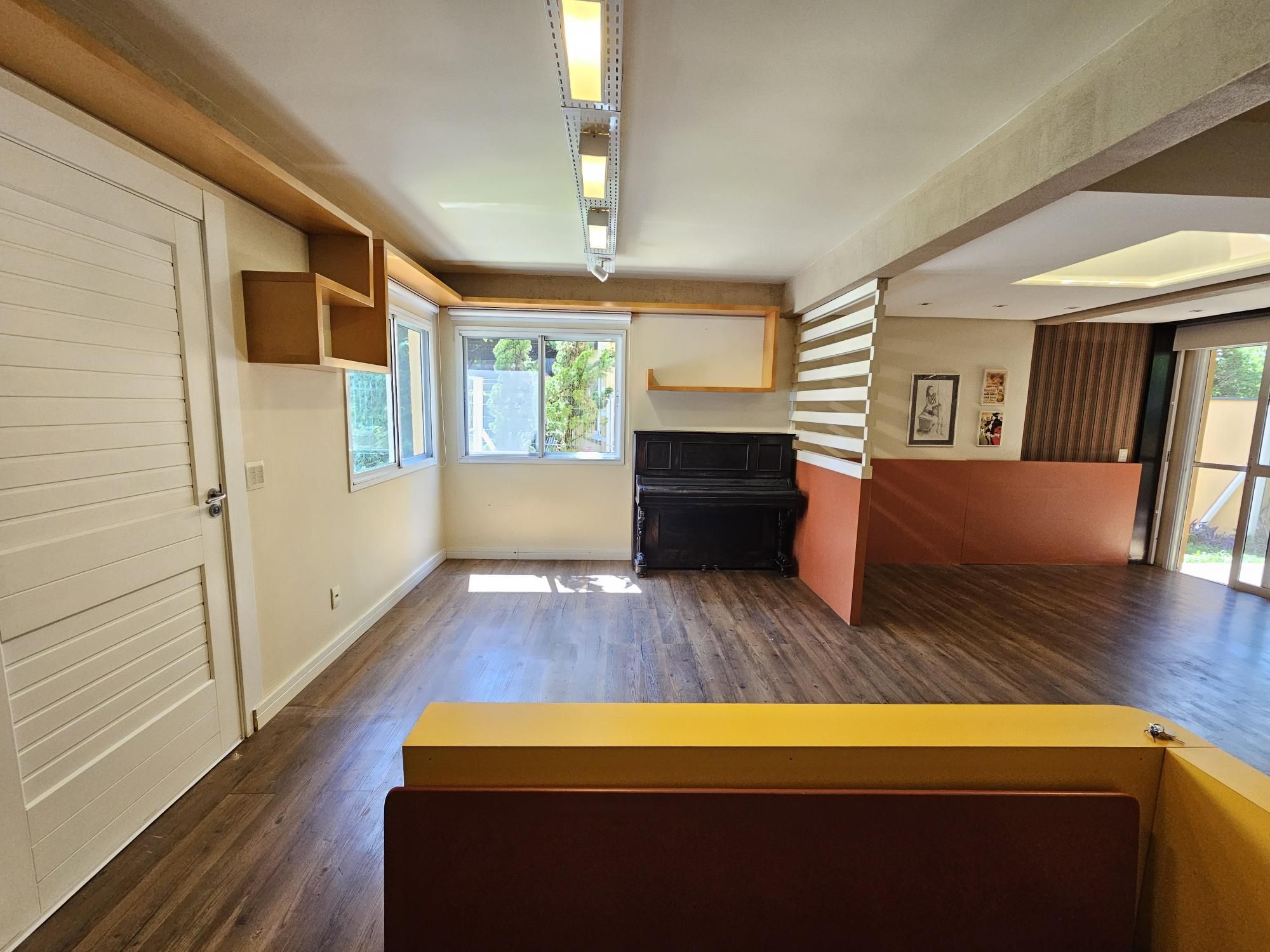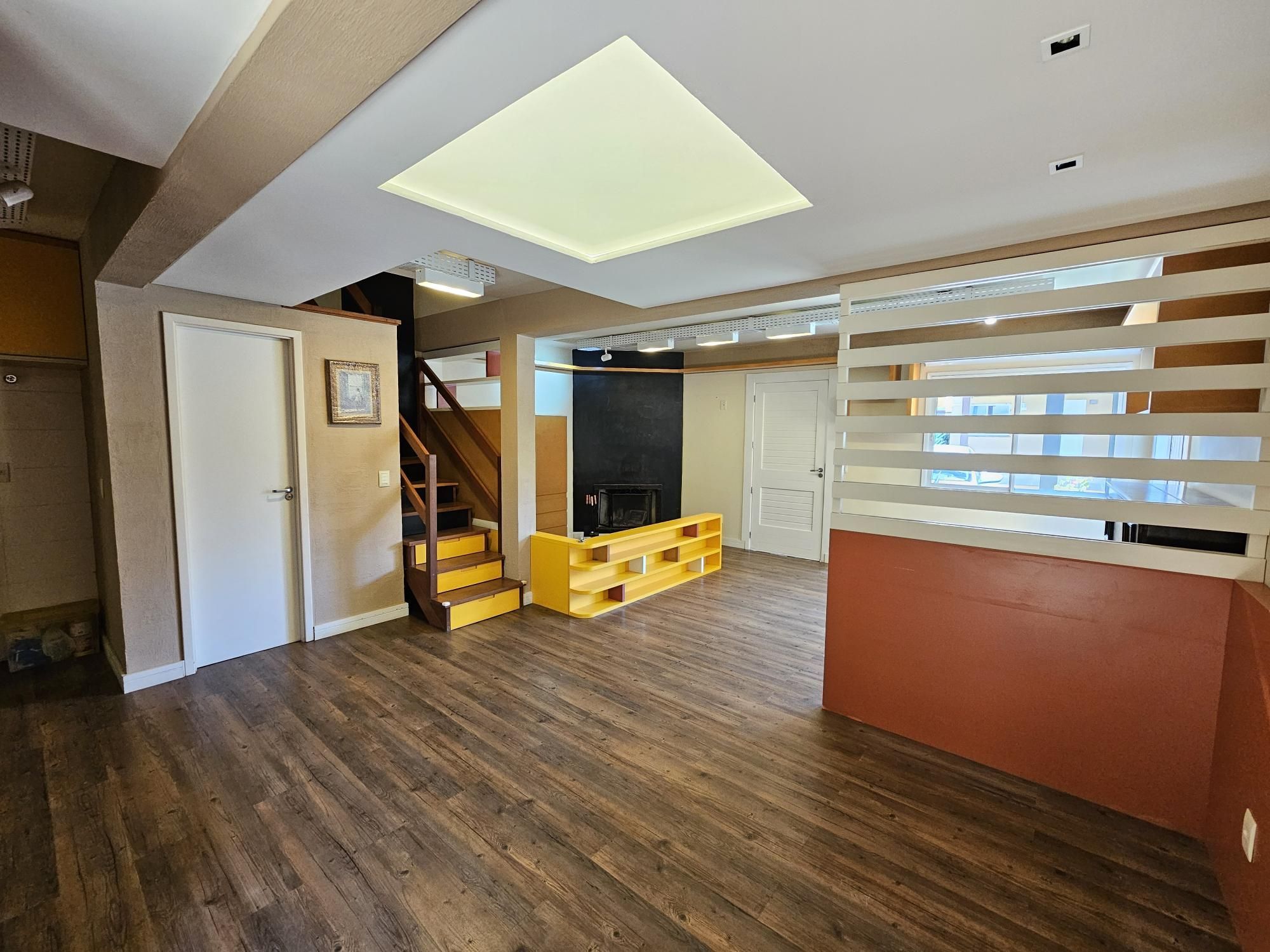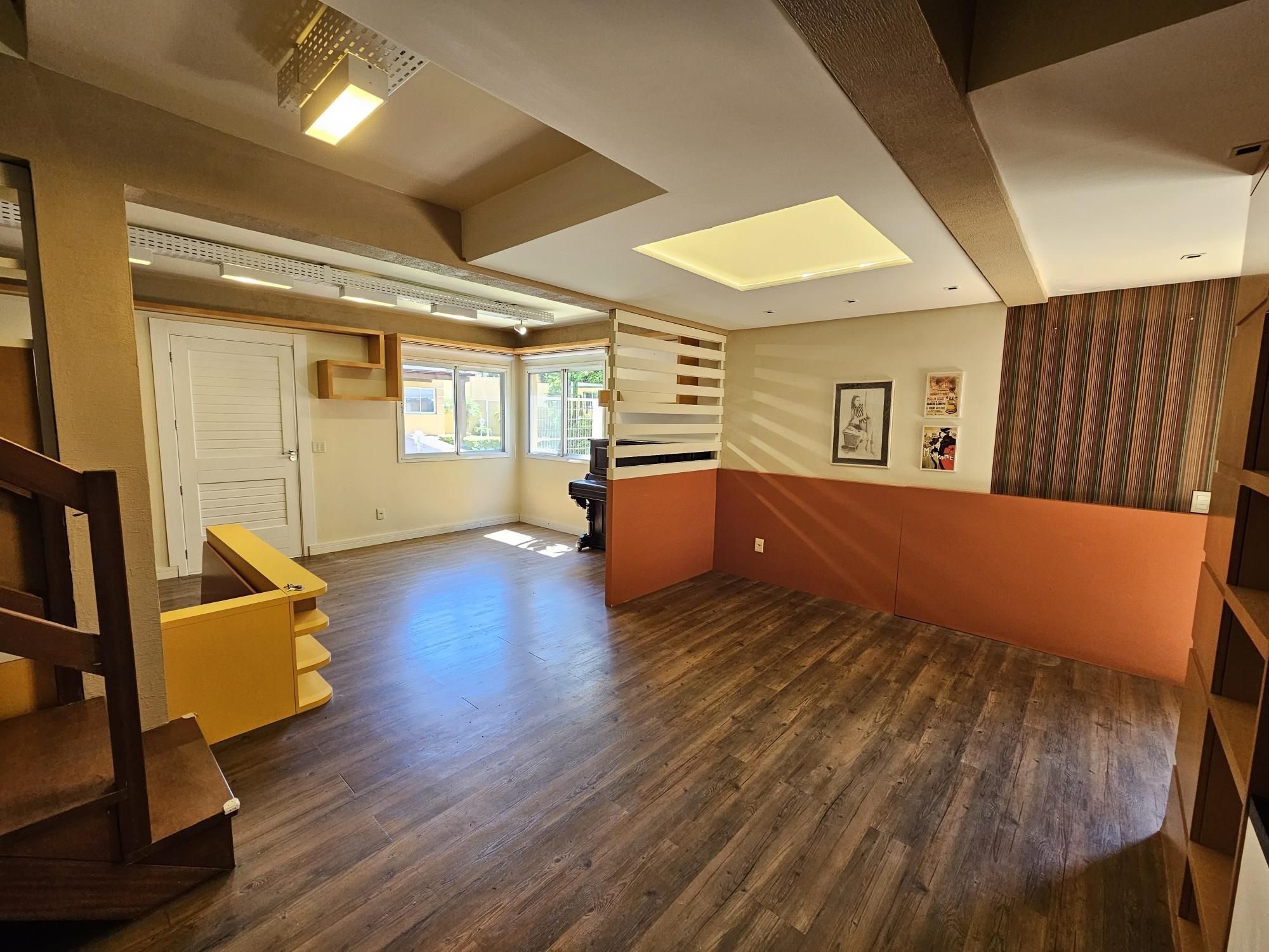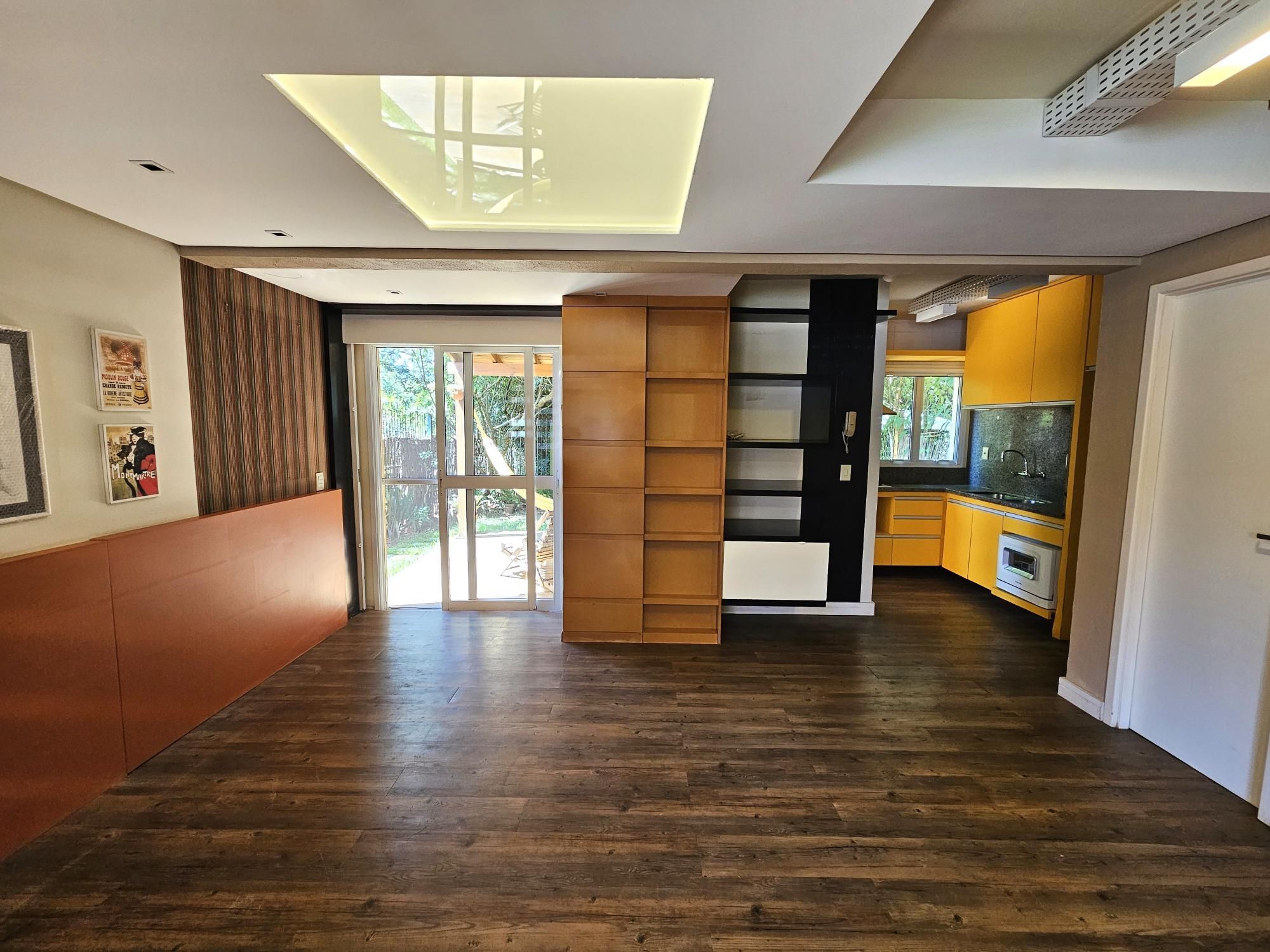 Desocupada e semimobiliada, casa com 3 dormitórios, sendo uma suíte, vaga para dois carros. Térreo tem living para 3 ambientes com lareira, cozinha com armários, área de serviço independente, varanda para o quintal de fundos. Na parte superior ficam os dormitórios, todos com armários sob medida.