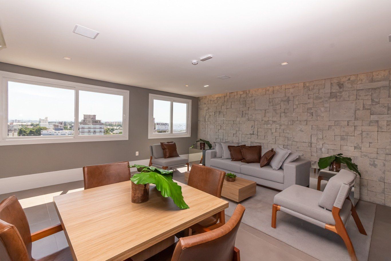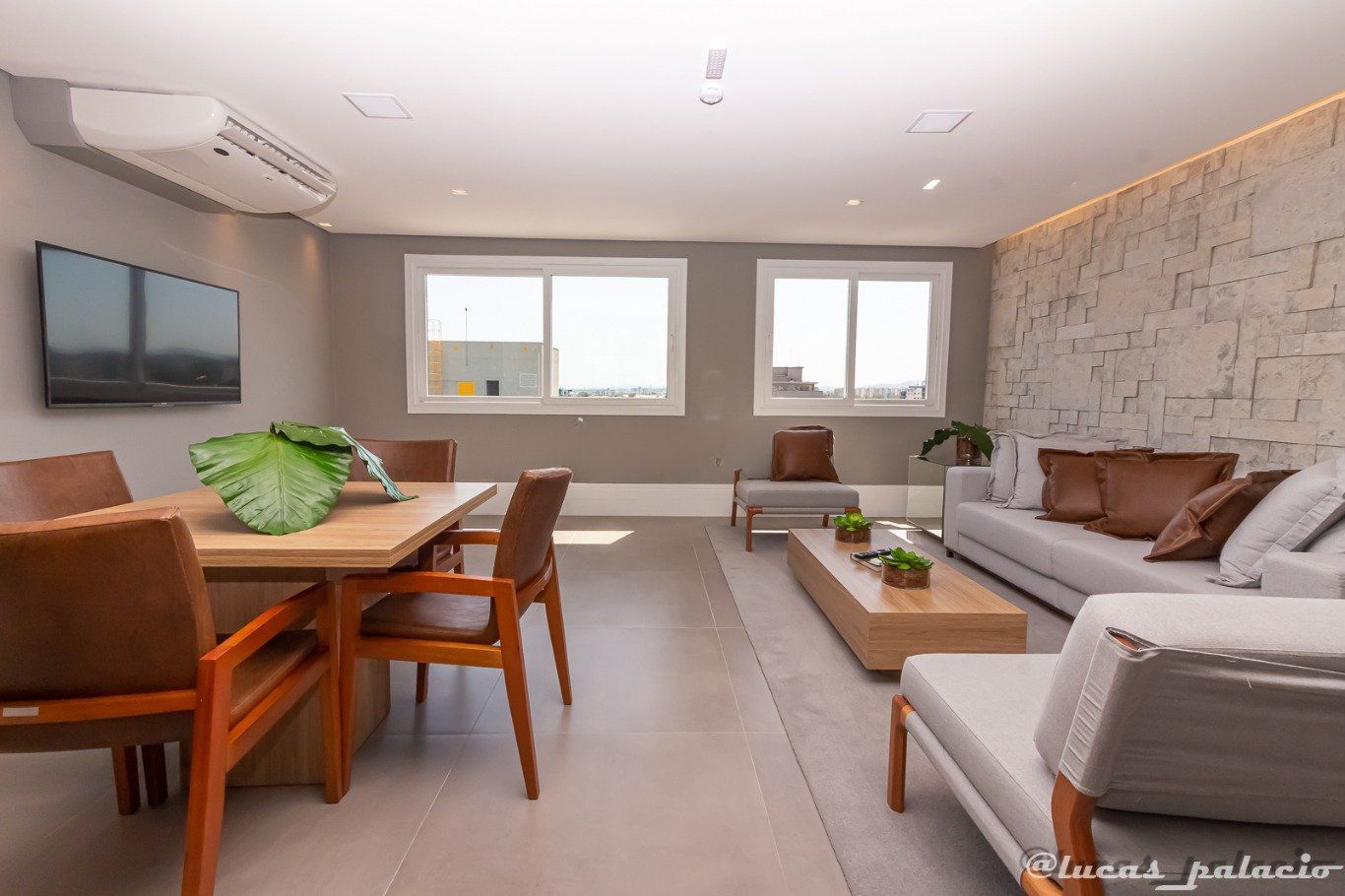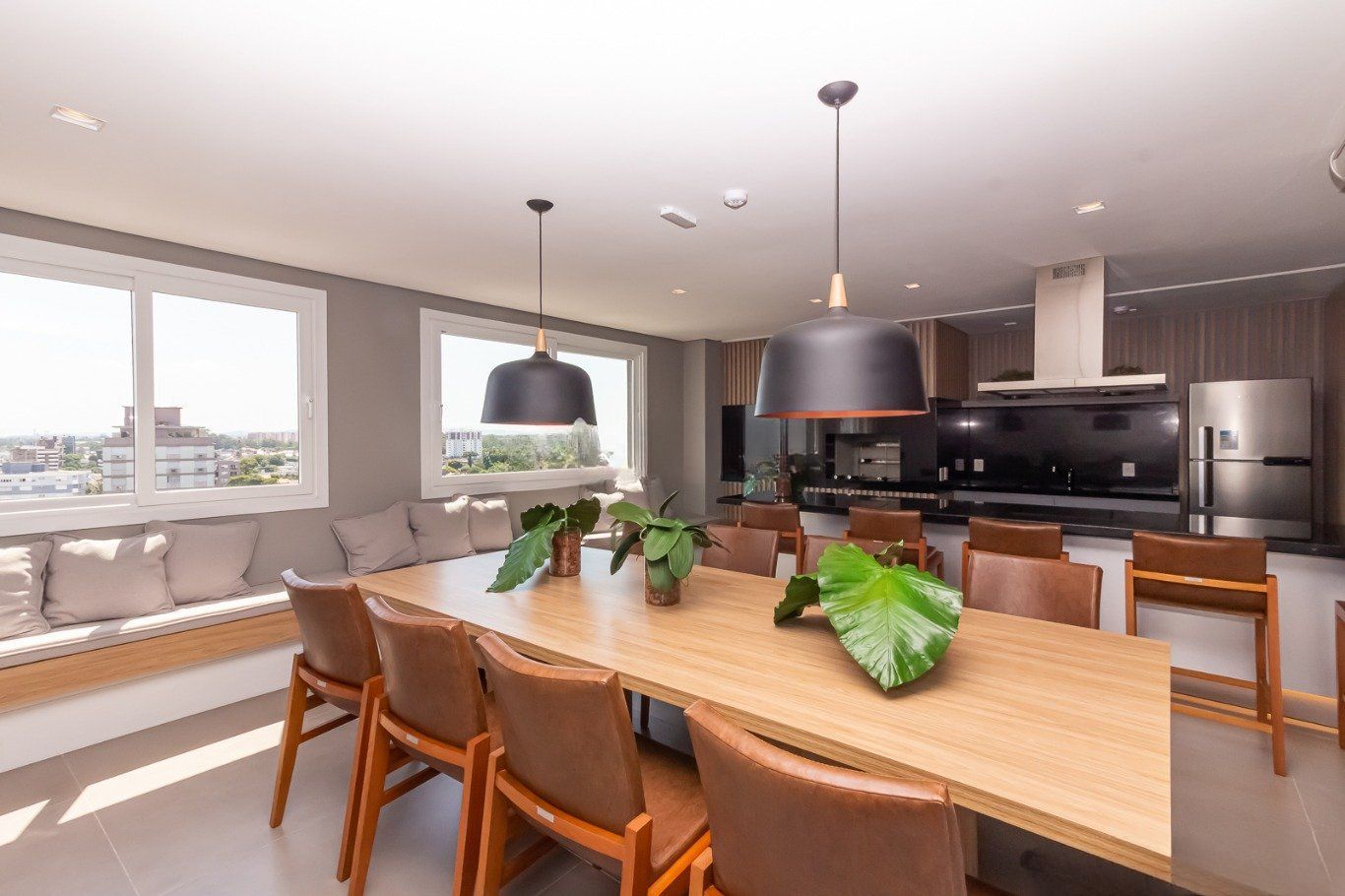 Sala de estar e jantar com móveis planejados, janela grande com ventilção natural. Cozinha e área de serviço planejada. Banheiro planejado, com iluminação solar e ventilação natural.