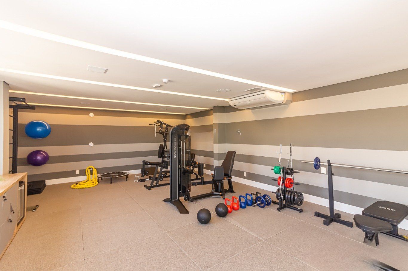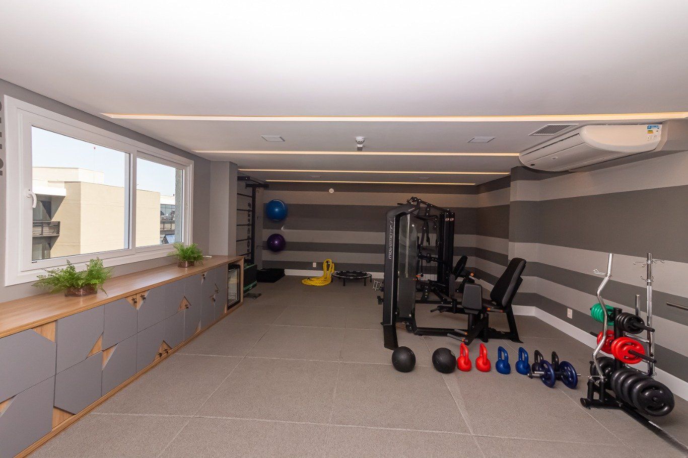 1 quarto com móveis planejado e ar condicionado.