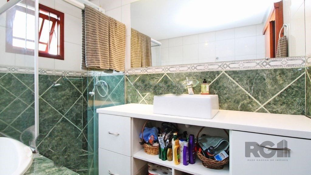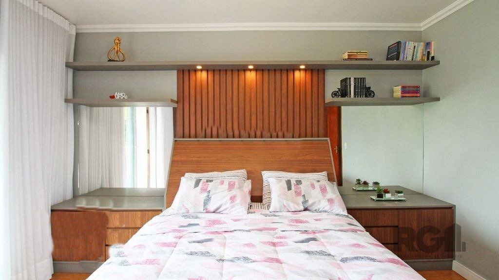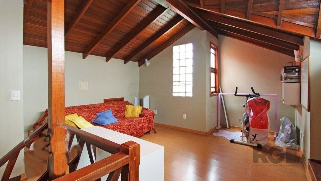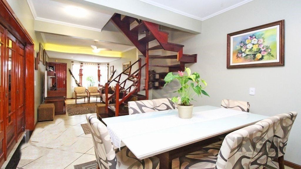 Sobrado fora de condomínio, toda reformada e modernizada, 03 dormitórios, sendo uma suíte com Closet, com possibilidade quatro dormitórios ou gabinete no Sótão, living dois ambientes com lareira, sala de jantar, copa cozinha, área de serviço separada, lavabo. Garagem para dois carros fechada, cerca elétrica, alarme, ficam móveis da cozinha, closet e lavanderia. Gás central, ventiladores, motores dos portões. Piscina e pátio.