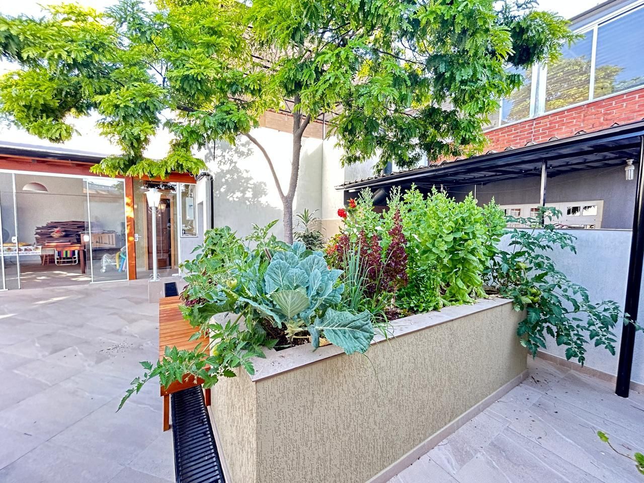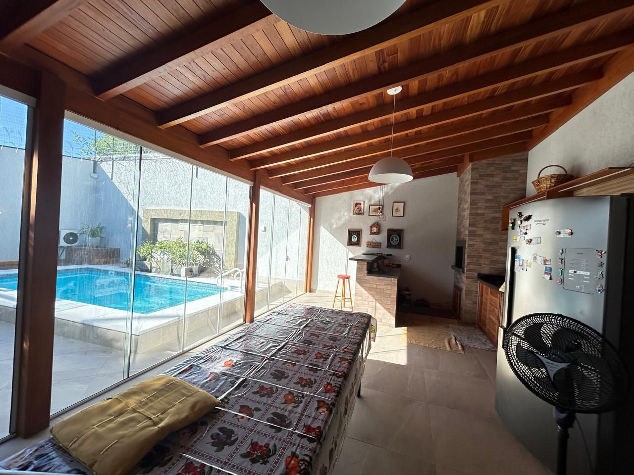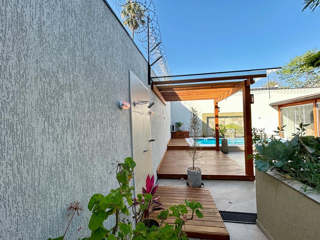 O terreno ainda oferece um salão de festas com churrasqueira, piscina, jardim de inverno, orta e garagem coberta para 2 carros, com espaço adicional para mais 4 veículos. Tudo isso em uma casa totalmente reformada, com elétrica e hidráulica novas, cerca elétrica e sistema de segurança com câmeras.