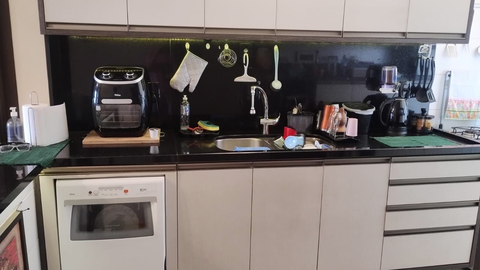 OPORTUNIDADE, excelente,  apartamento semimobiliado, 3 dormitórios com 1 suíte, Living 2 ambientes, sacada com churrasqueira, de frente. Cozinha americana, lavanderia, despensa e banho social, 2 vagas cobertas e escrituradas. Ótima posição solar. Ficam móveis planejados na sala, cozinha e dormitórios e split.