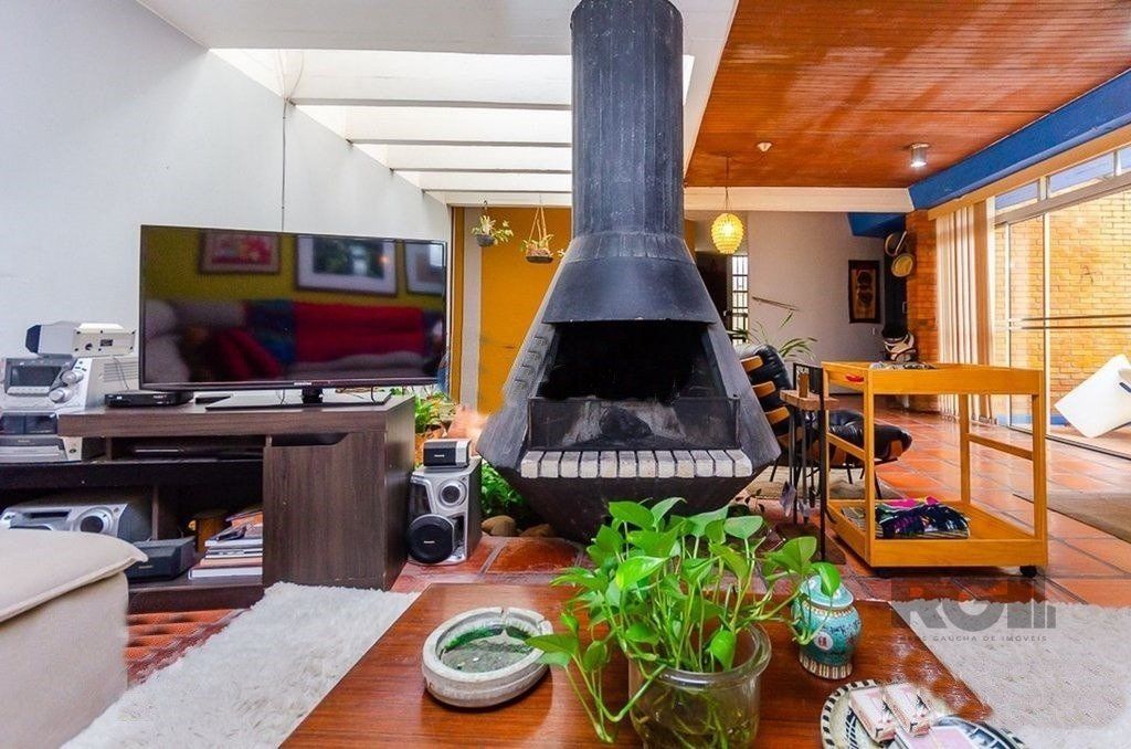 Casa com 4 dormitórios, sendo 1 suíte, 3 vagas de garagem, 250m² no bairro Chácara das Pedras (Porto Alegre). Excelente casa com toques arquitetônicos modernos, especial pra quem procura tranquilidade, qualidade de vida e privacidade. Ao entrar, nos deparamos a um grande living com uma imponente lareira de concreto, combinada com um jardim de inverno muito aconchegante. Em seguida a sala de jantar circular, cozinha e área de serviço e aos fundos uma dependência de empregada com banheiro auxiliar. Na área intima, existe uma antesala antes de chegar aos 4 dormitórios, dois deles com acesso ao pátio do pergolado. Na garagem há espaço para 2 carros e também pode virar um salão de festas com churrasqueira.