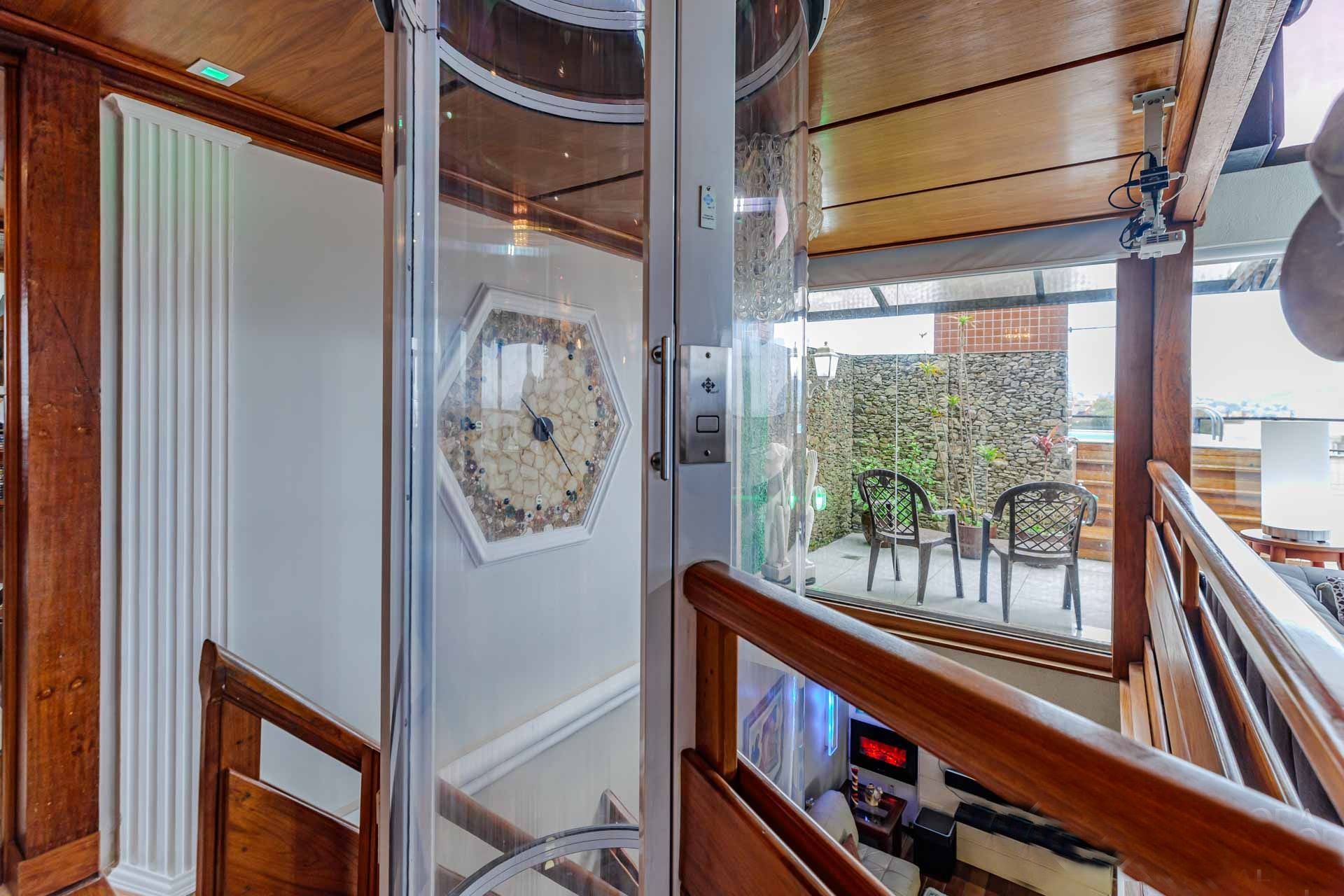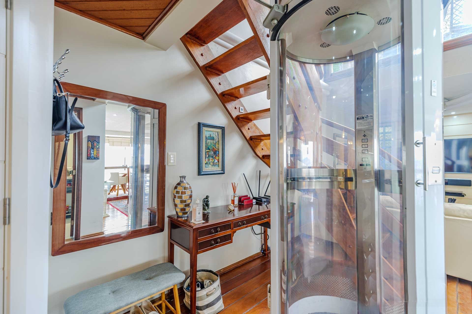 Elevador eletrônico que atende os 3 pavimentos, fechadura digital., cortinas elétricas com automação, câmeras de segurança particular na garagem e dentro do apartamento em ambos pavimentos e Alexa. Em todos ambietes tem ar condicionado split.