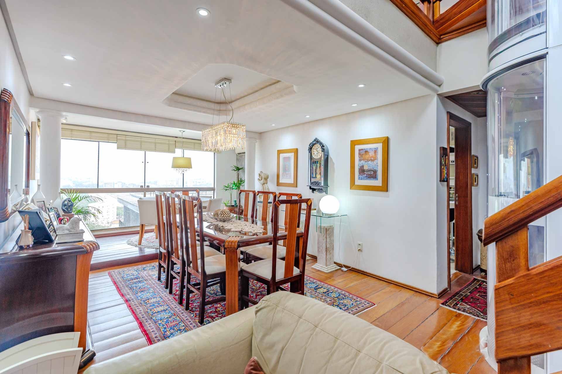 Cobertura com 3 pavimentos com 3 ou 4 dormitórios, sendo 2 suítes, janelas do chão ao teto no living e dormitórios. 2 vagas escrituradas, cobertas e individuais.