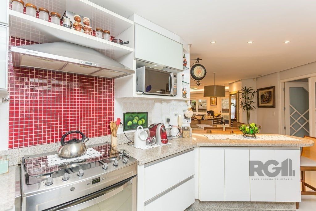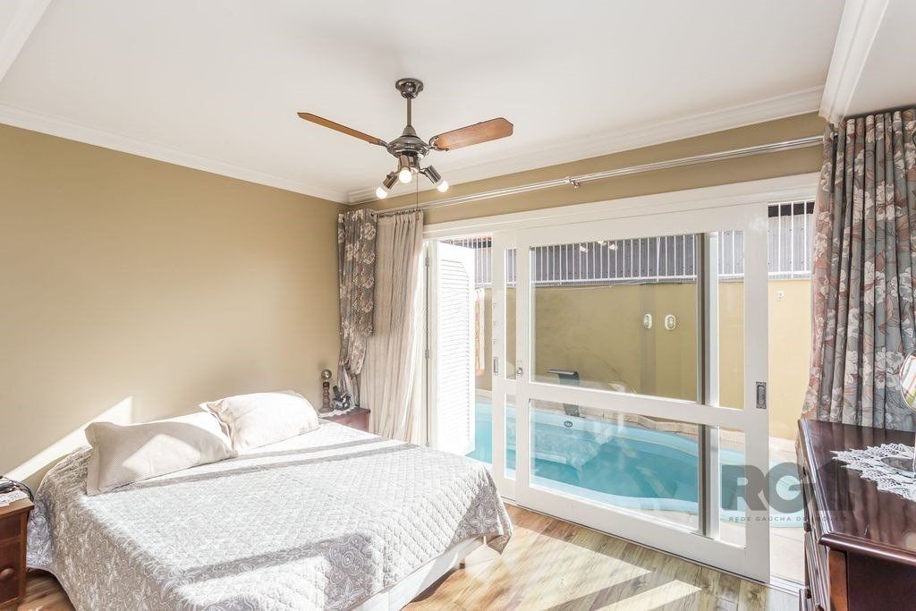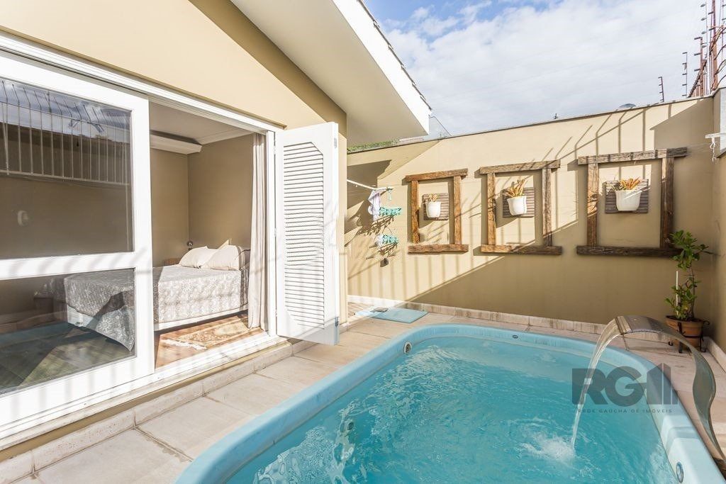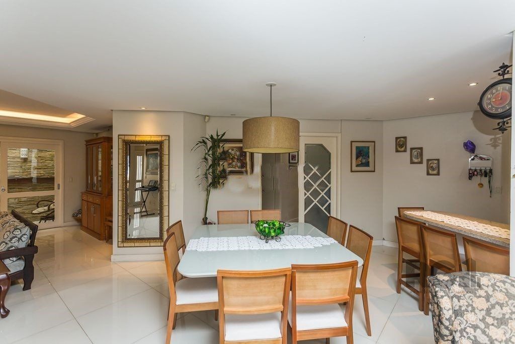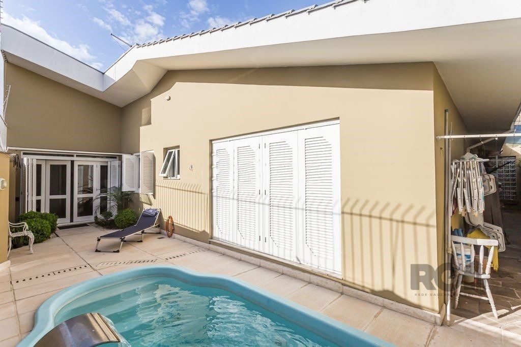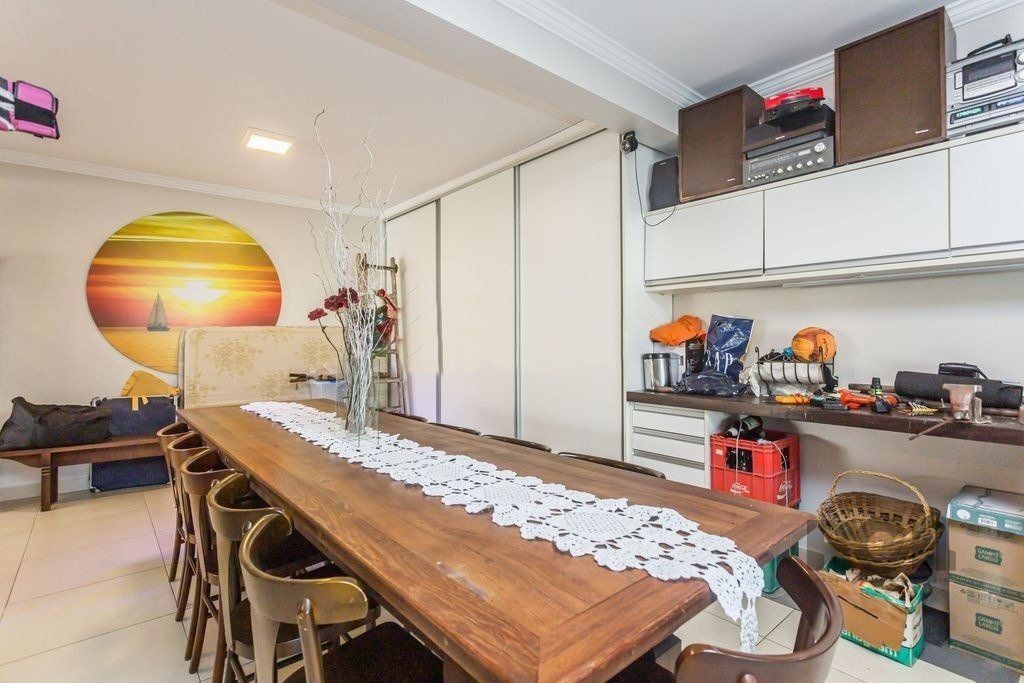 ótima Casa 350 m² privativos, terreno 21 x 28. Decorada e mobiliada, 4 suítes sendo 1 master, living com 3 ambientes. sala de estar com lareira, de jantar, jardim de inverno e lavabo, cozinha integrada, dependência de empregada e lavanderia separada, banheiro auxiliar. Nos fundos, a parte da garagem coberta foi transformado num salão de festas/espaço gourmet amplo com churrasqueira, fogão a lenha coberto e um pátio descoberto com piscina. Casa conta com um sótão de cerca de 100 m² privativos. Garagem coberta para 2 carros e espaço para outros 4 descobertos.