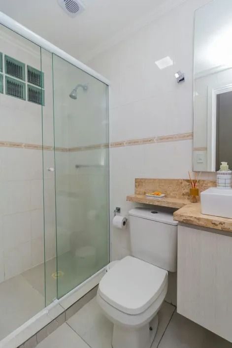 A área social é acolhedora, com living para dois ambientes, lavabo e uma cozinha ampla que se integra bem ao dia a dia da casa. Nos fundos, um pátio ensolarado com churrasqueira convida para momentos de lazer e convivência.