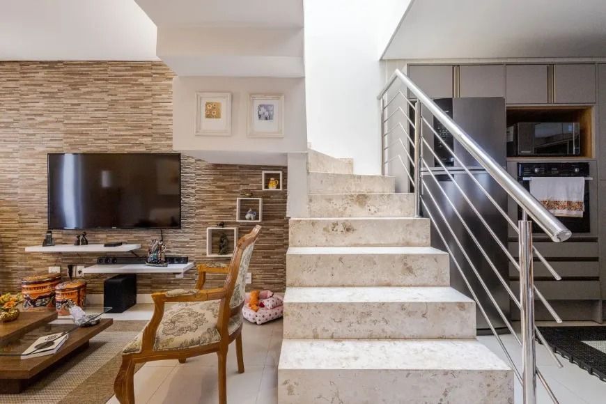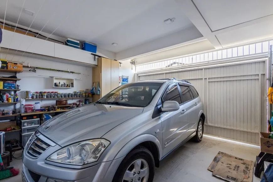 Os acabamentos valorizam ainda mais o imóvel, com escada em granito, corrimãos em aço inox e iluminação em LED em todos os ambientes. Permanecem cinco aparelhos de ar-condicionado split, além de água quente em toda a residência. As duas vagas de garagem são cobertas e lado a lado, garantindo praticidade no dia a dia.