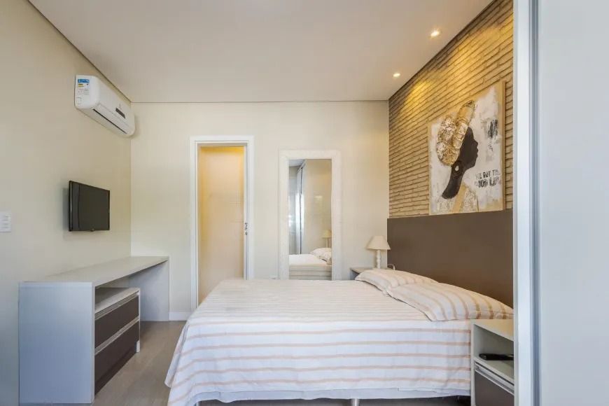 Os acabamentos valorizam ainda mais o imóvel, com escada em granito, corrimãos em aço inox e iluminação em LED em todos os ambientes. Permanecem cinco aparelhos de ar-condicionado split, além de água quente em toda a residência. As duas vagas de garagem são cobertas e lado a lado, garantindo praticidade no dia a dia.