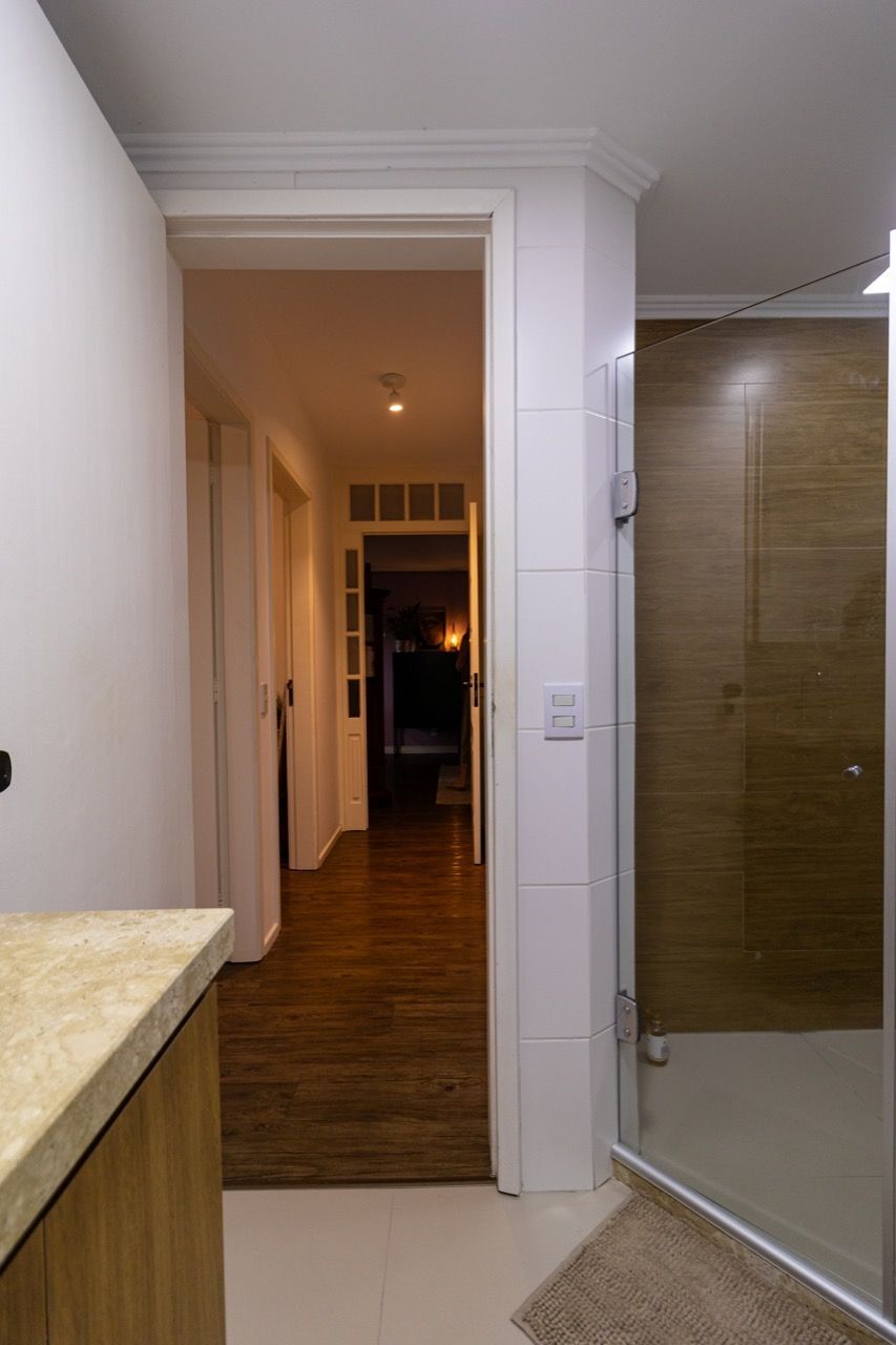 São 2 dormitórios, sendo 1 suíte, totalizando 2 banheiros (suíte + lavabo social), despensa, com um living amplo e aconchegante para dois ambientes, integrando sala de estar e jantar. A área social conta com assoalho em madeira, trazendo conforto e elegância, enquanto a cozinha em porcelanato com móveis planejados oferece praticidade no dia a dia. O apartamento ainda possui uma varanda separada, perfeita para momentos de relaxamento, e área de serviço independente.