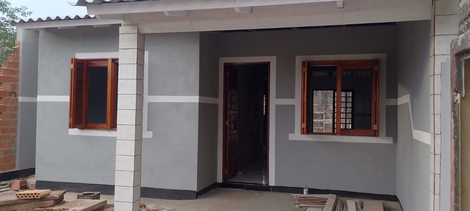 Ótima casa em Canoas, no bairro Mato Grande, em fase final de construção, com 80m² construídos, em terreno medindo 7,50 x 20m (150m²). Possui sala ampla com cozinha integrada, 3 dormitórios, banheiro, e área coberta nos fundos. Garagem para até carros no pátio da frente. Nos fundos pátio com 28m². Toda com piso porcelanato, materiais e acabamentos de qualidade.