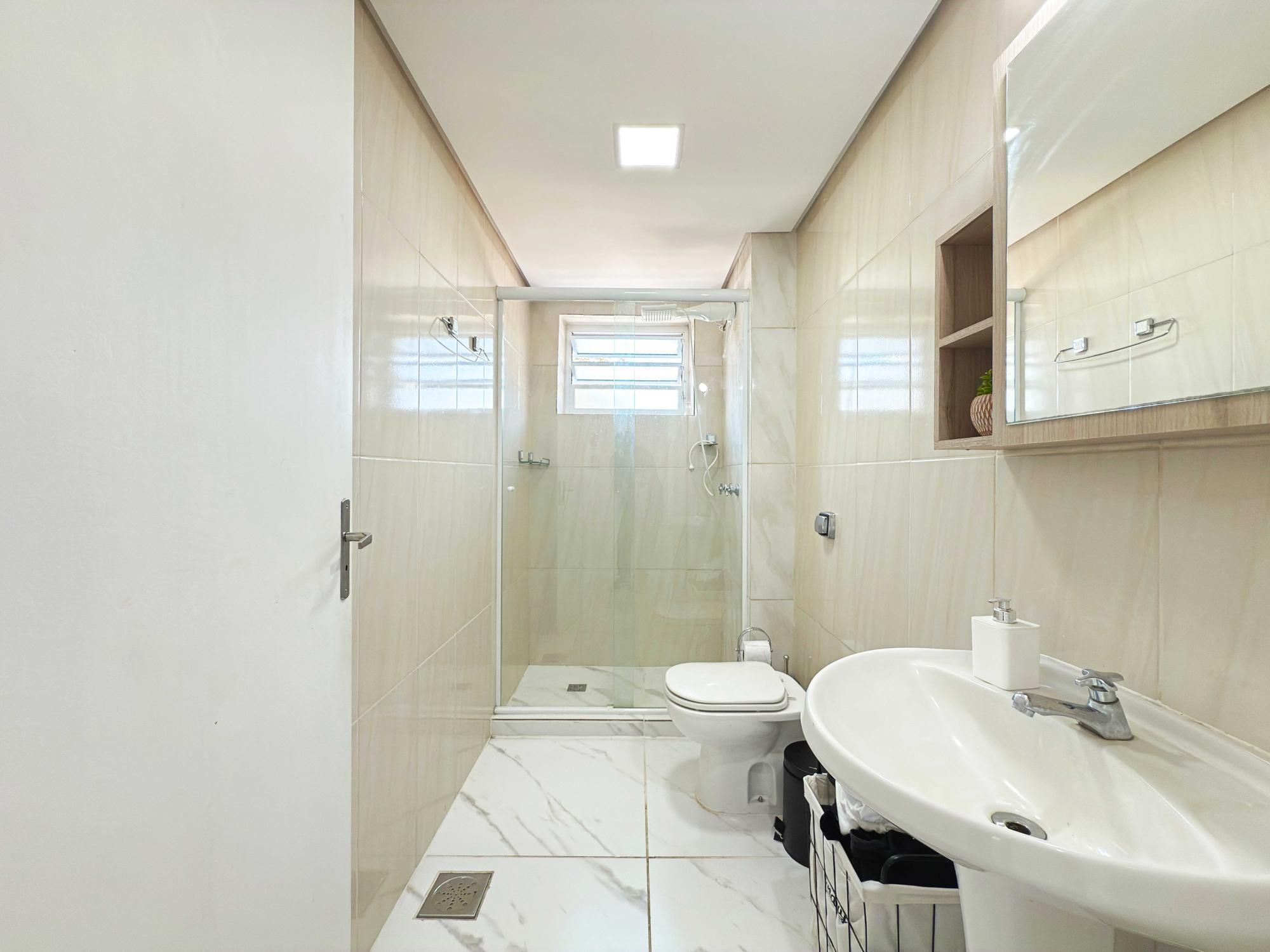 Apartamento semimobiliado com 99 m² de área privativa com 3 dormitórios sendo 1 suíte, banheiro social com ventilação natural, living amplo para 2 ambientes, cozinha montada com área de serviço individual, dependência de empregada. Não possui vaga de garagem.