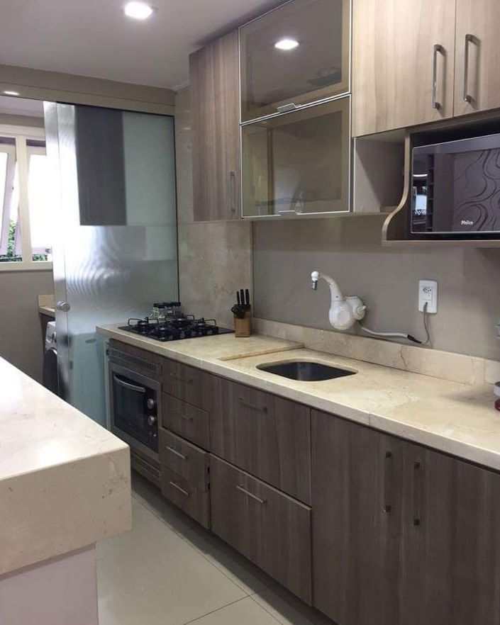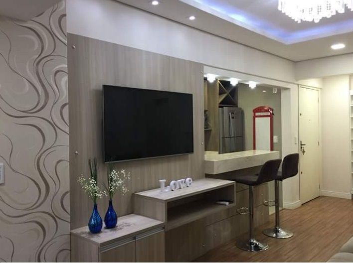 Na área íntima, são dois dormitórios, sendo uma suíte, além de banheiro social. O imóvel conta com piso laminado e permanecem todos os móveis planejados, garantindo praticidade para quem deseja se mudar sem preocupações.