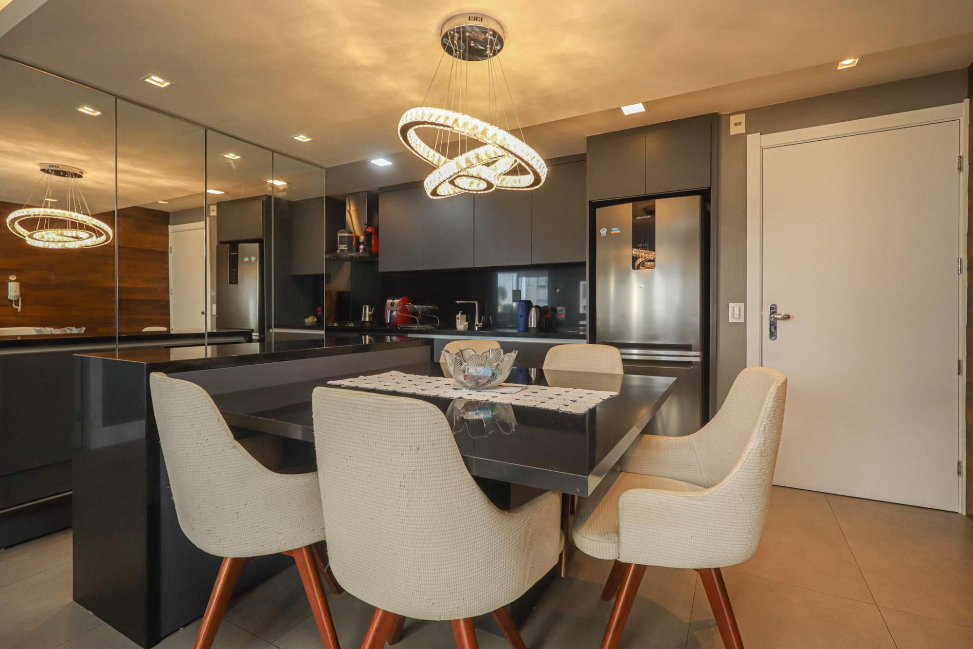 Apartamento mobiliado com 76 m² de área privativa, originalmente com 3 dormitórios, sendo 1 suíte. O terceiro dormitório foi integrado ao living, proporcionando um amplo espaço para 3 ambientes. Conta ainda com banheiro social com ventilação natural, cozinha montada com churrasqueira e área de serviço. Possui 1 vaga de garagem coberta e escriturada.