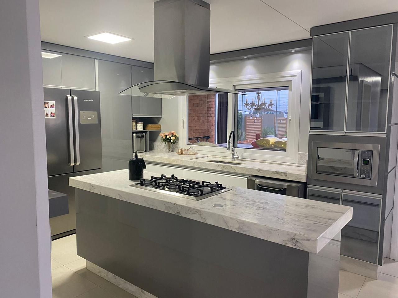 Excelente Oportunidade no coração de Imbé! Amplo sobrado mobiliado, localizado no Condomínio Golden River, no Centro de Imbé, com fácil acesso a comércios, praias e serviços, Com um design moderno. Possui 4 Quartos (sendo todos suites com closet), Mobiliado; lavabo, Banheiro Social; Cozinha sob medida estilo americana com ilha central; 400m² de área construída; Ampla Sala de estar, Sala de jantar, Área de Serviço; Área gourmet com churrasqueira; Garagem; Piscina; aquecida; Casa toda com aquecimento com Boiler e placas solares; placas fotovoltaicas para energia; Condomínio com Segurança 24h, Piscinas, Salão de festas; Quadras de esportes, Espaço kids.