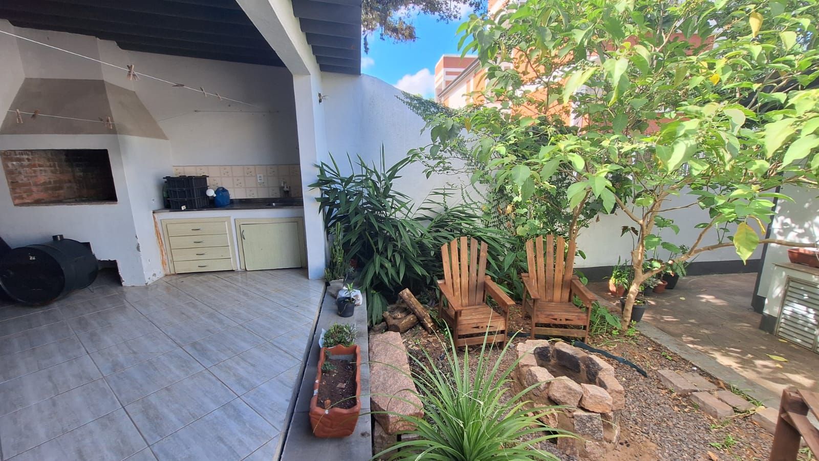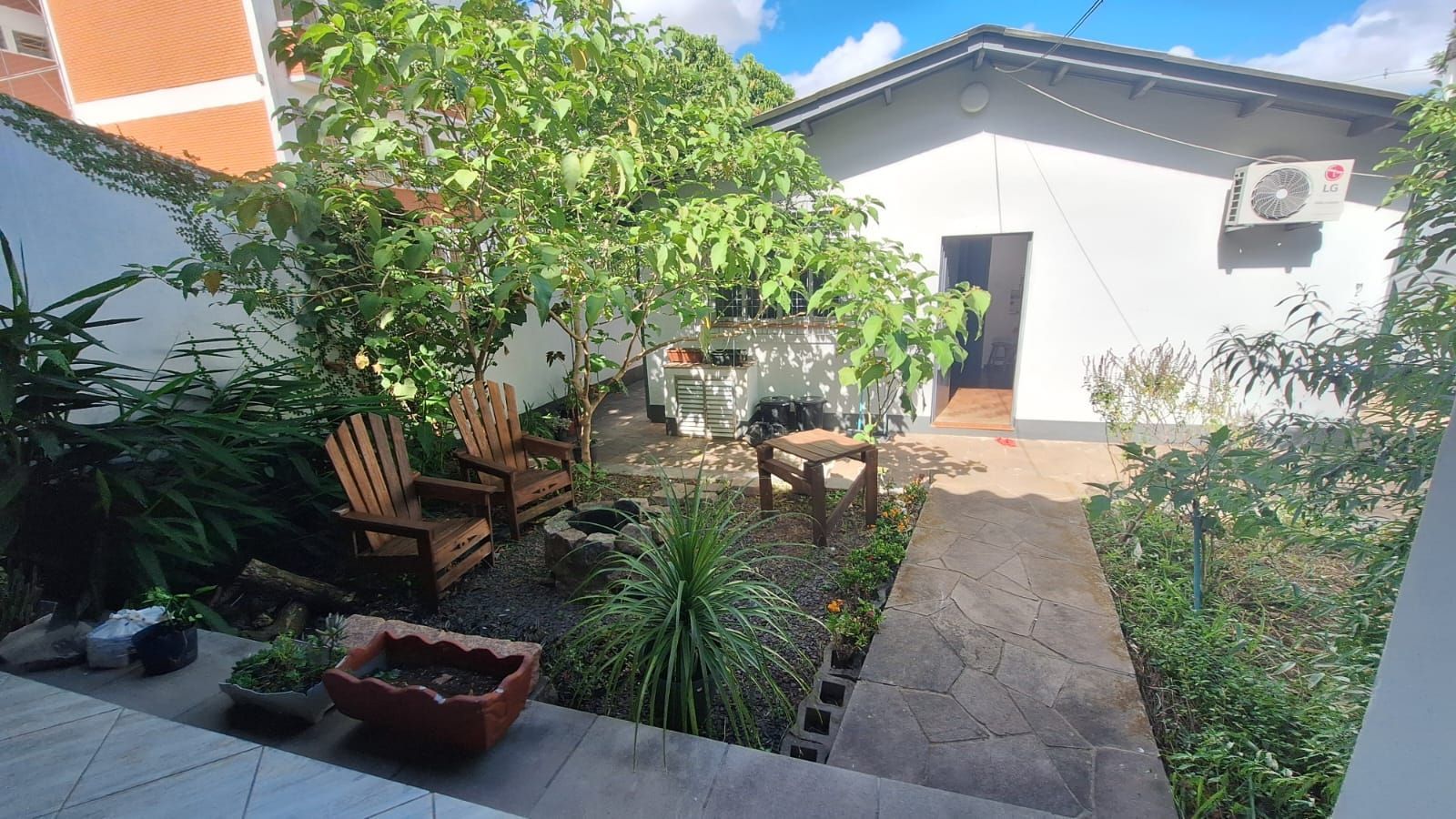 Pátio frontal e pátio nos fundos
