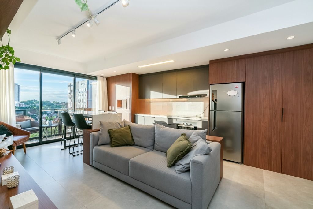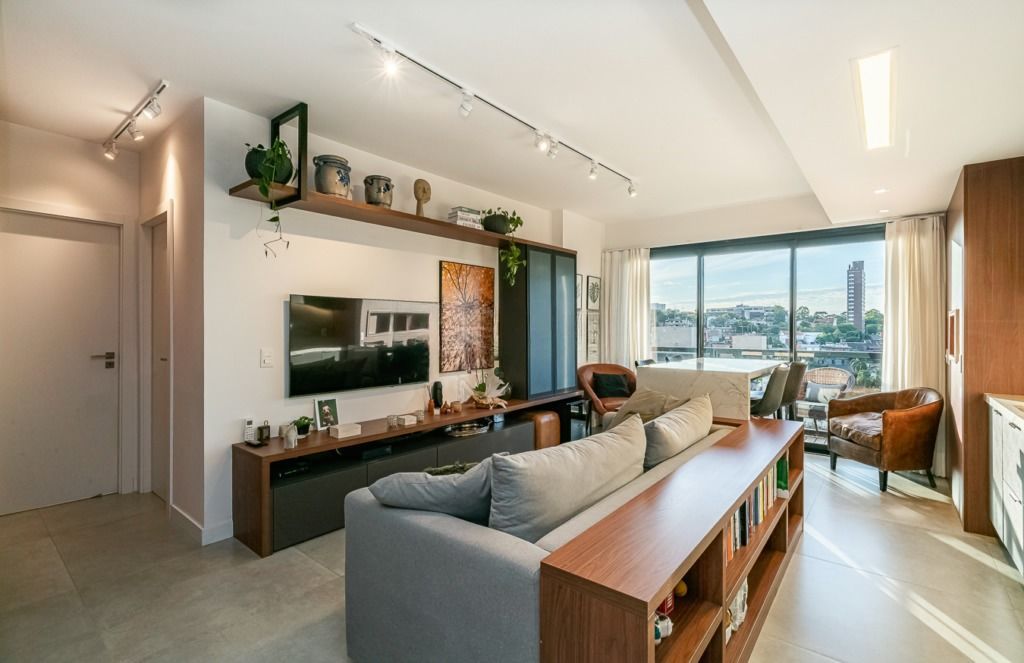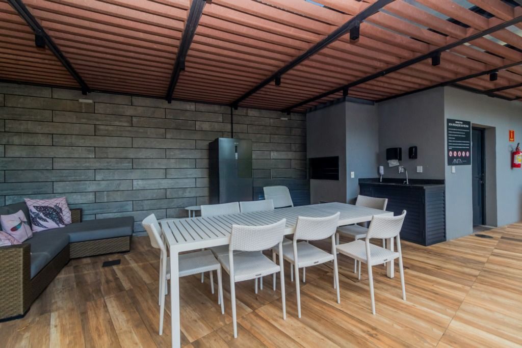 Possui 70m², privativos, com 2 dormitórios, sendo 2 suítes, living para dois ambientes, cozinha integrada com churrasqueira, sacada aberta e lavabo. Além de duas vagas de garagem individuais, cobertas e escrituradas.