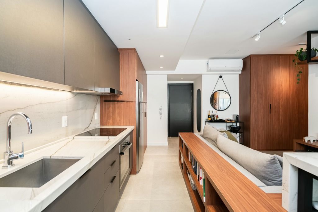 Semi-mobiliado e decorado por arquiteto, apresenta móveis planejados e revestimentos de excelente qualidade e muito bom gosto. Conta com splits instalados em todos os ambientes e sofisticado projeto de iluminação.