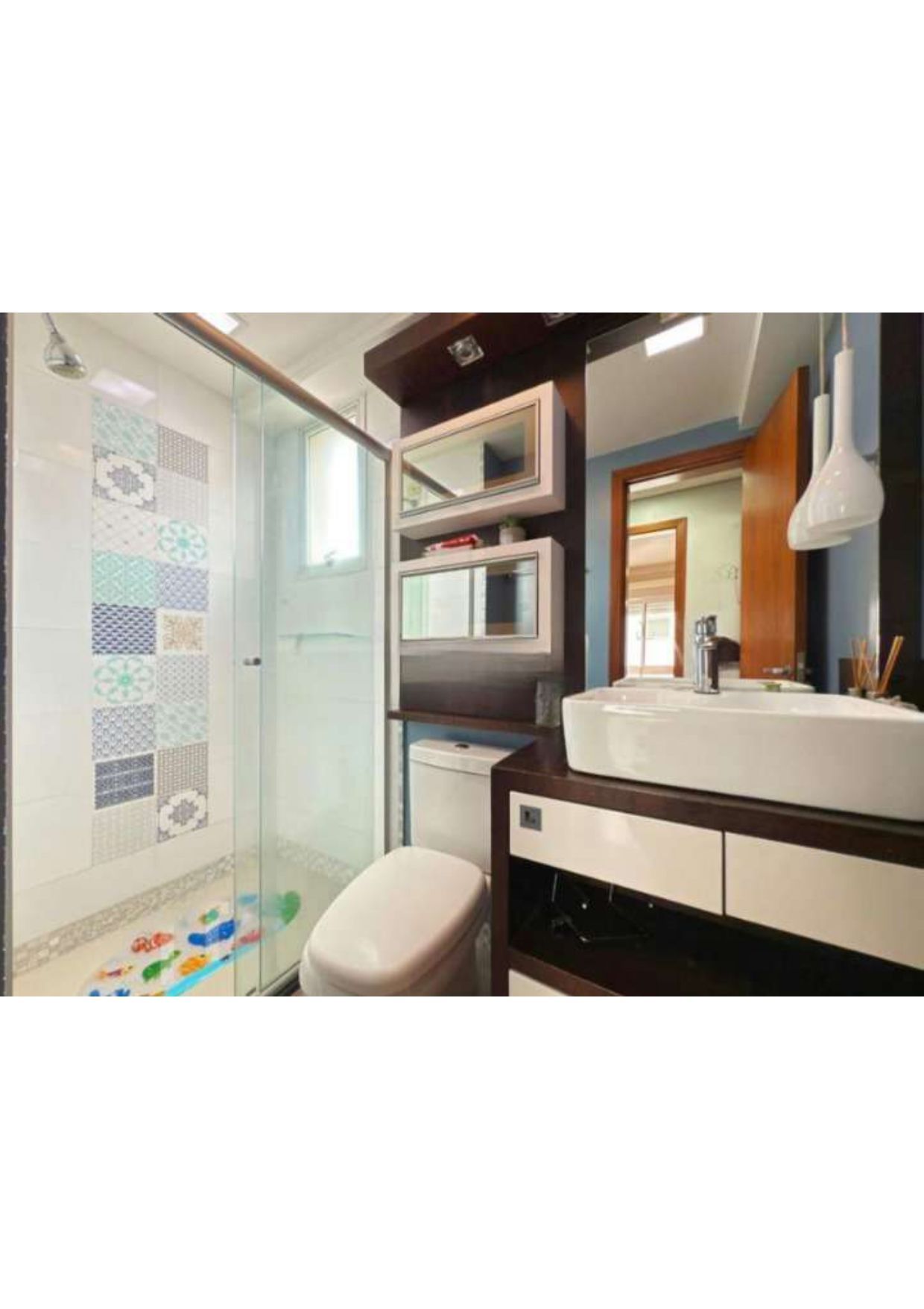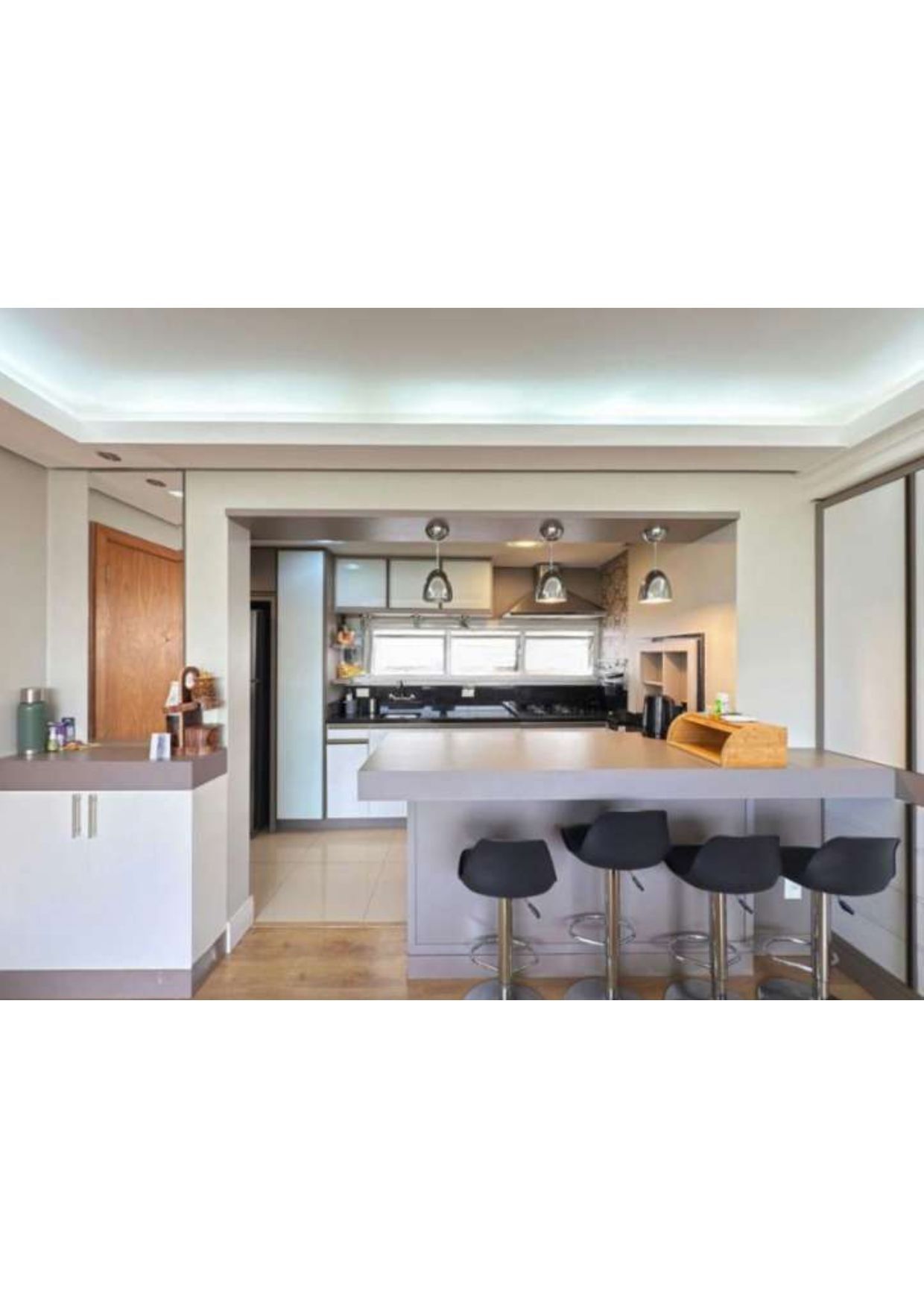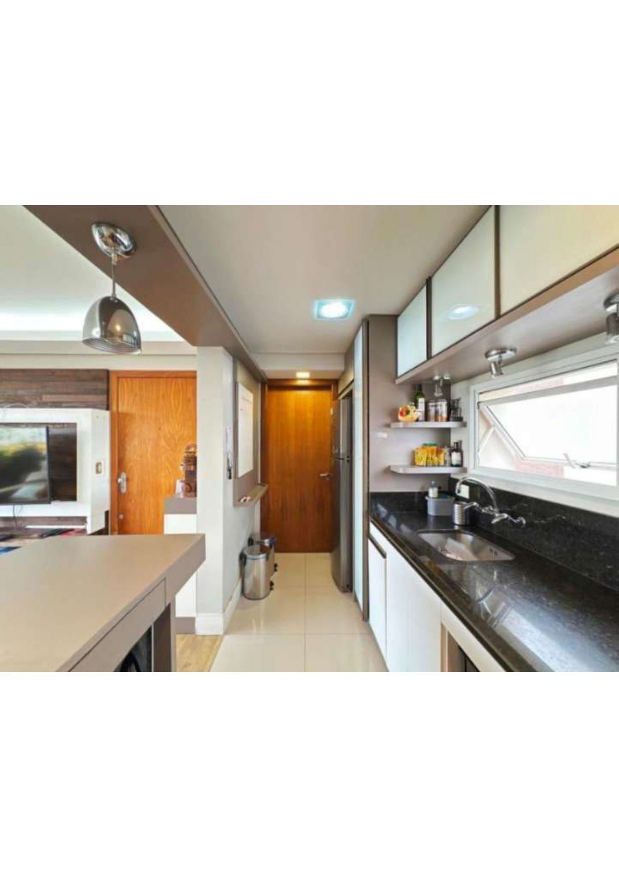 2 Dormitórios ( 1 suite ), banho social, living 2 ambientes em piso laminado, cozinha americana com espaço churrasco e área de serviço.