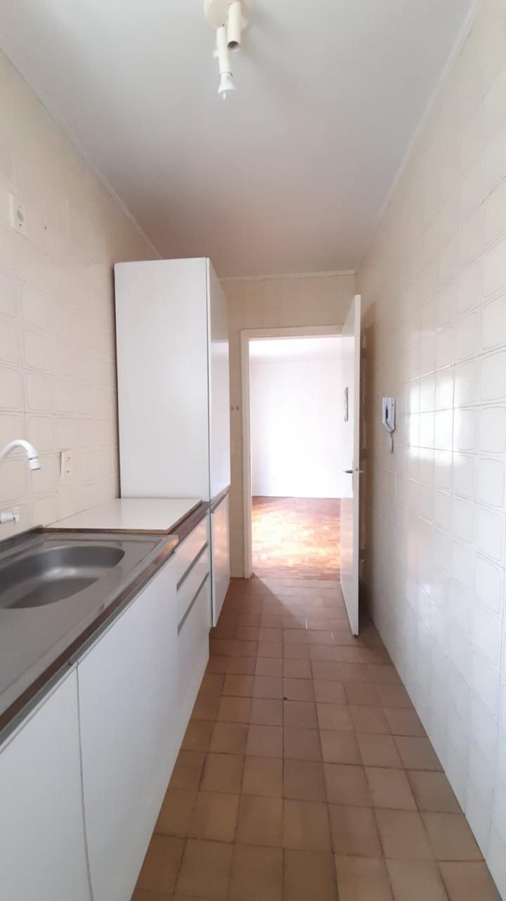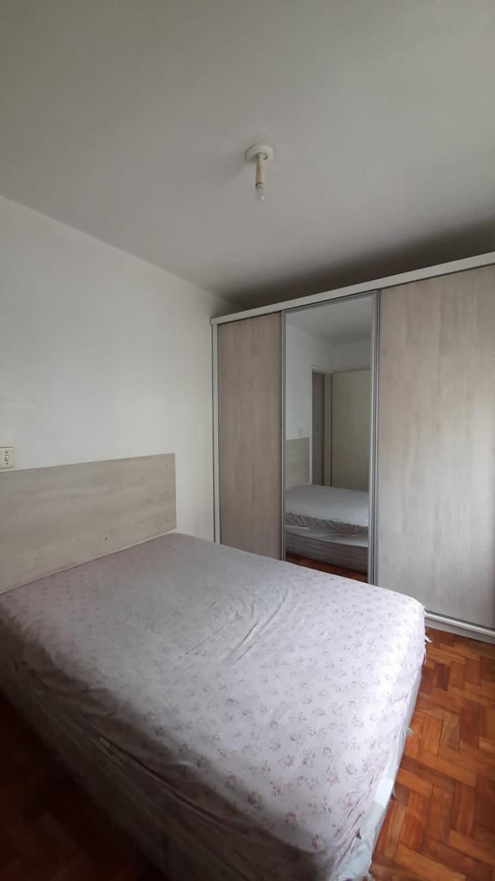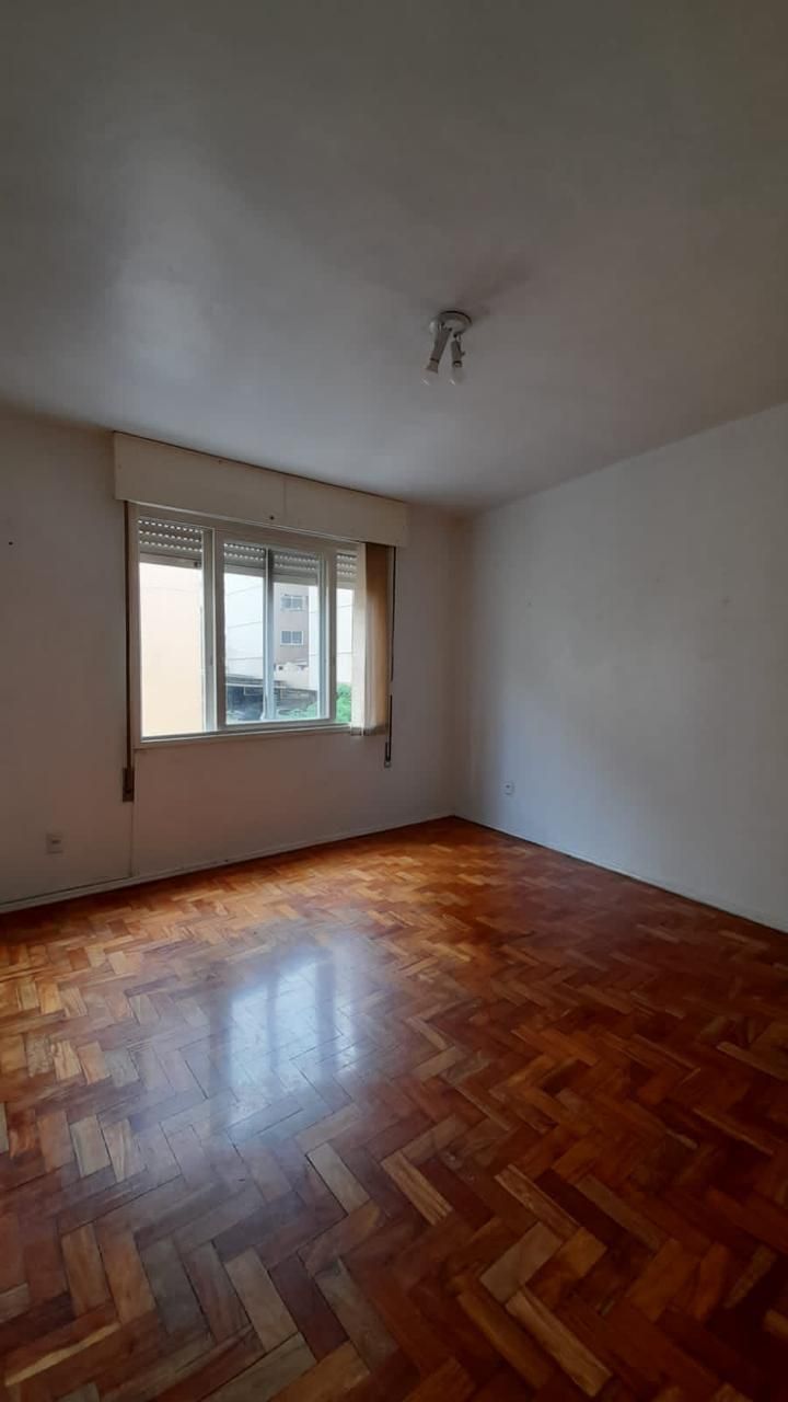 Apartamento de frente com um dormitório, living dois ambientes, banheiro, cozinha e área de serviço. Possui uma vaga de garagem.