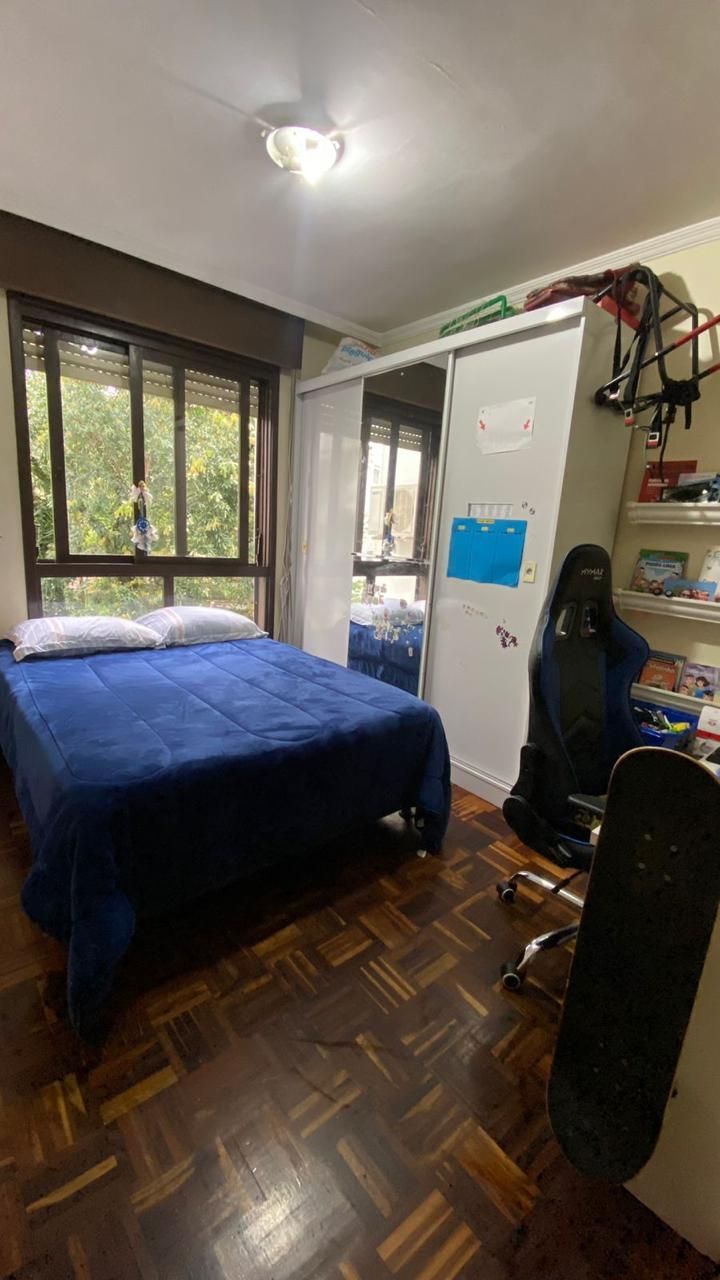 Apartamento com 2 dormitórios, banheiro social, sala de estar e jantar integradas, cozinha e área de serviço.