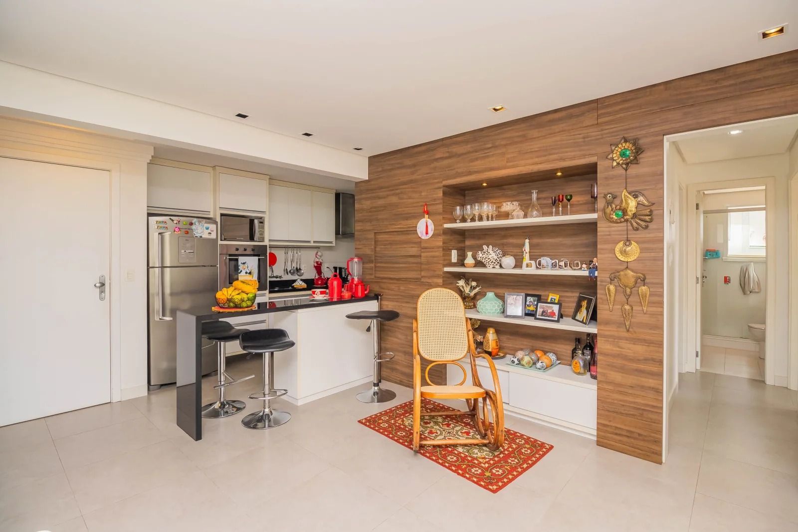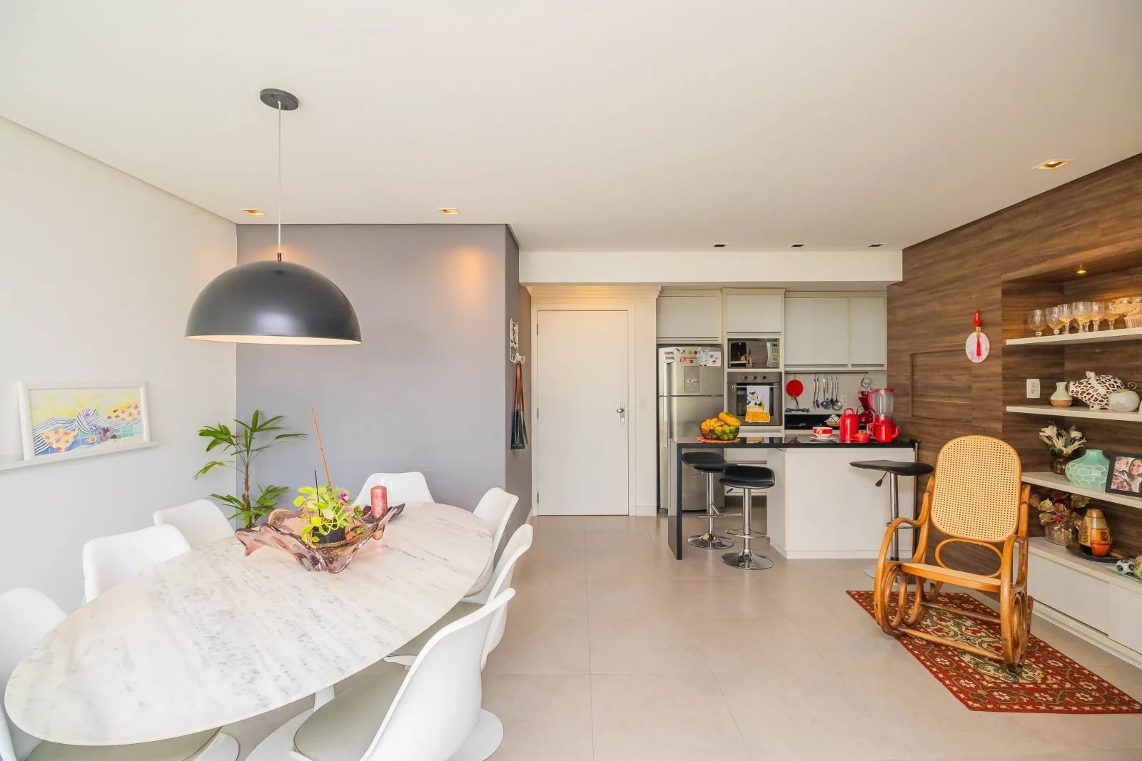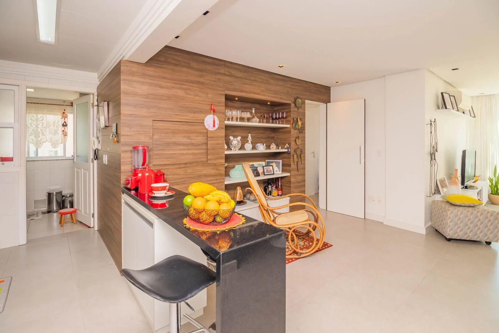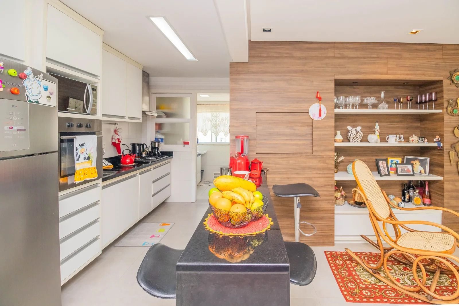 A cozinha tipo americana equipada com churrasqueira e o estar social proporcionam espaços amplos e integrados, ideais para o convívio diário. Além disso, o apartamento conta com vaga dupla de garagem, gás individual, ar condicionado e móveis planejados, garantindo praticidade e conforto em todos os ambientes.