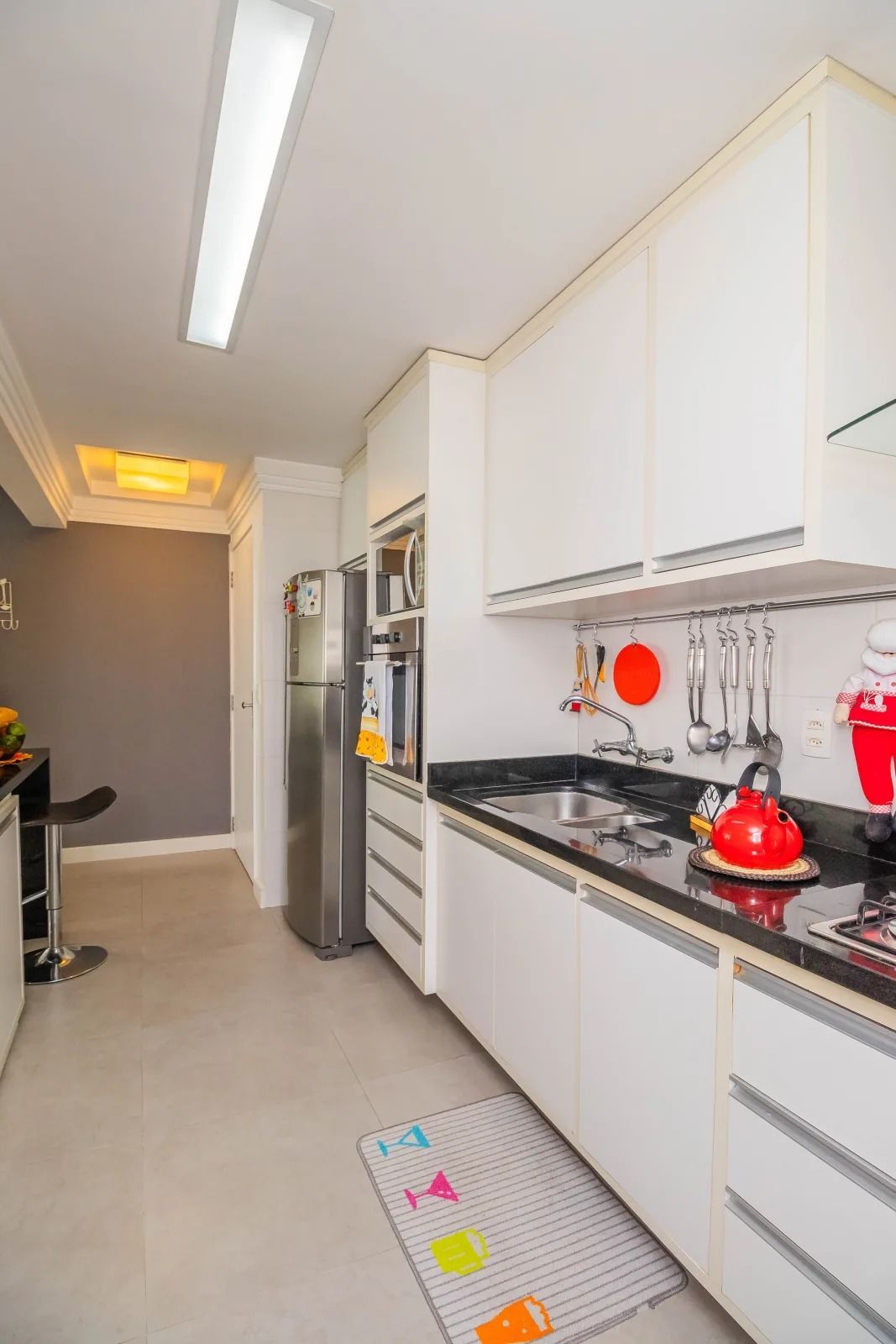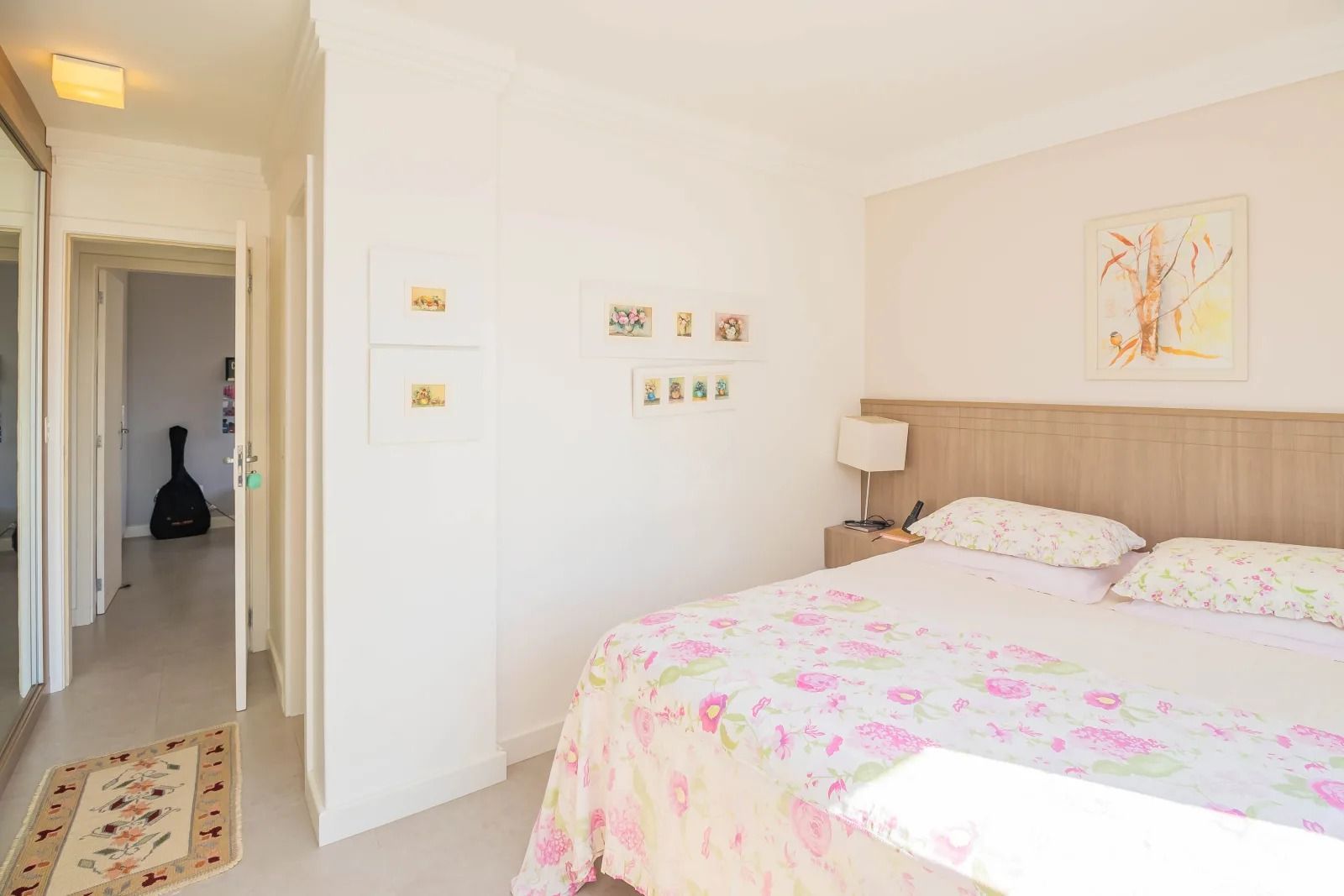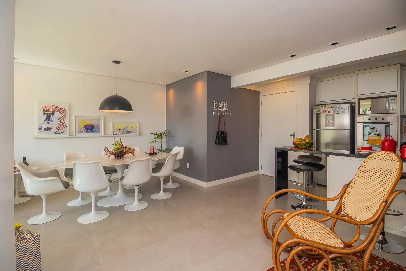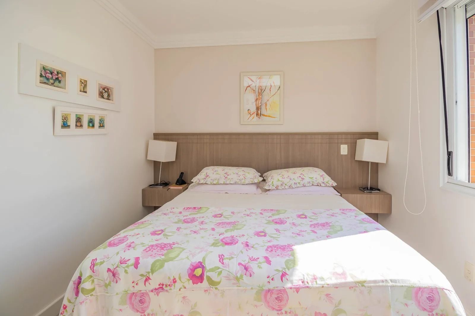 A cozinha tipo americana equipada com churrasqueira e o estar social proporcionam espaços amplos e integrados, ideais para o convívio diário. Além disso, o apartamento conta com vaga dupla de garagem, gás individual, ar condicionado e móveis planejados, garantindo praticidade e conforto em todos os ambientes.
