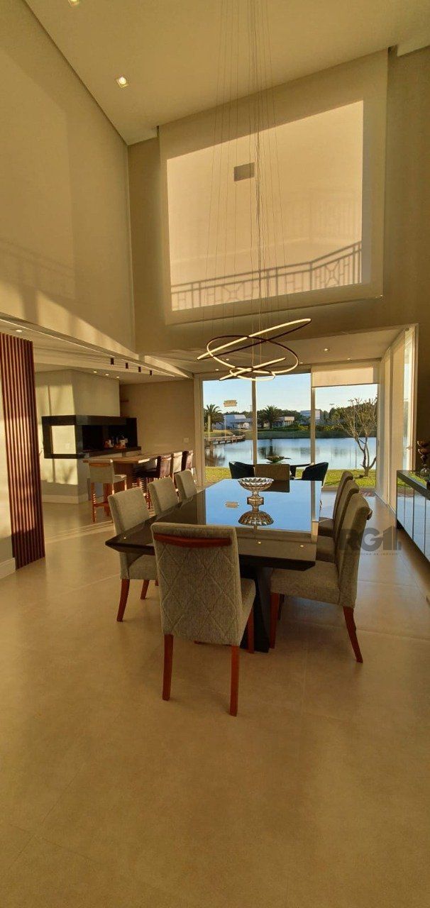 Imóvel com área de 300m2, mobiliado e decorado, com 4 suítes sendo uma delas no pavimento terreo, espaço Gourmet com fogão cooktop, refrigerador 3 portas, micro-ondas, máquina de lavar louça, adega, forno elétrico, lavanderia com máquina de lavar e secar, sala de estar com lareira, lavabo, Iluminação contemporânea em todas as peças da casa, sala de jantar com mesa 8 lugares e mesa de Jogos.