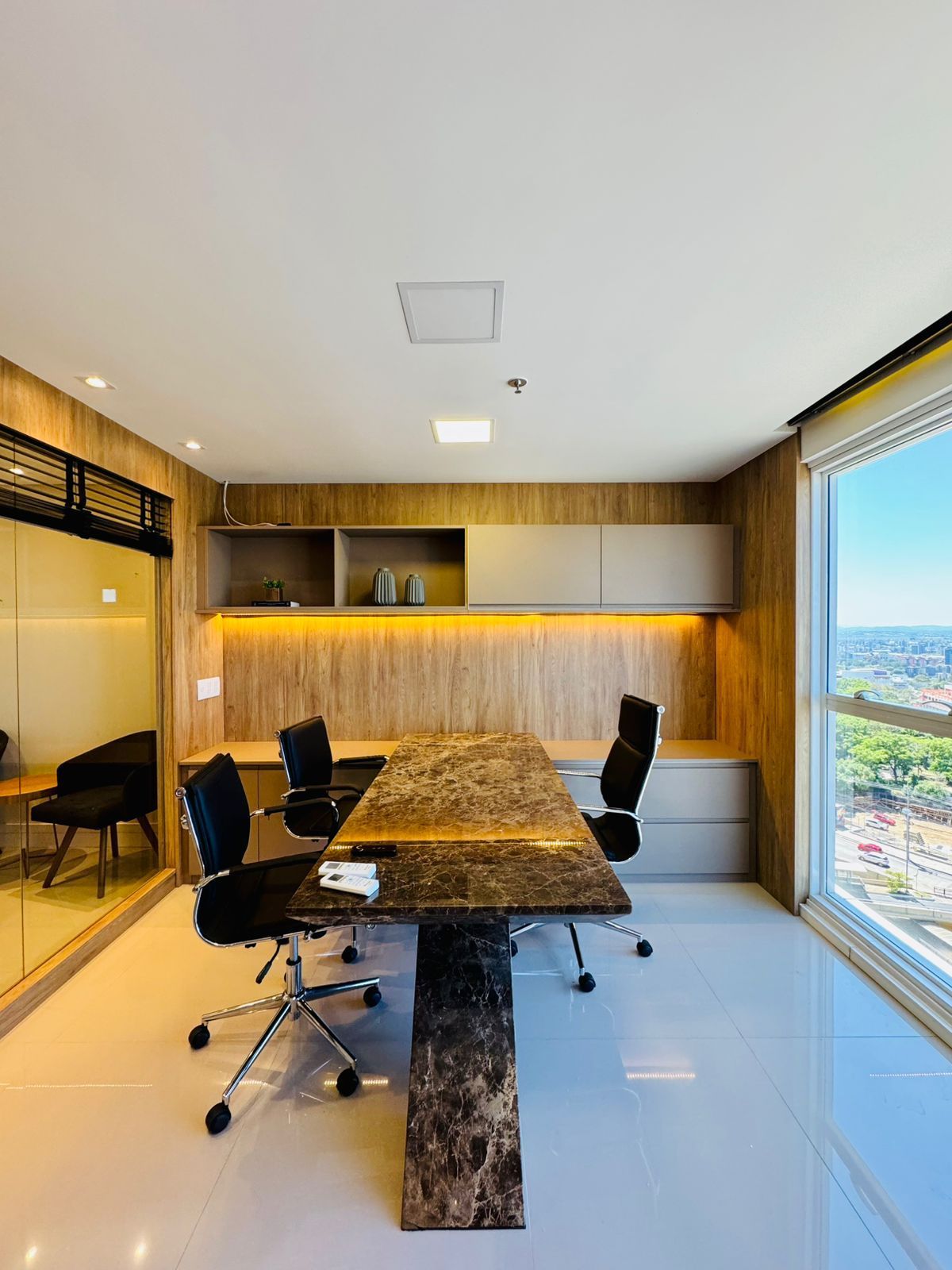 Sala comercial MOBILIADA no Bairro Petrópolis, com 36m², lavabo, espera para Split, 1 vaga de garagem coberta, andar alto com linda vista, sol da manhã . Condomínio com portaria 24hs, auditório, cozinha equipada para Coffee Break 2 salas de reuniões, podendo ser integradas, amplo Bistrô já mobiliado e fitness!