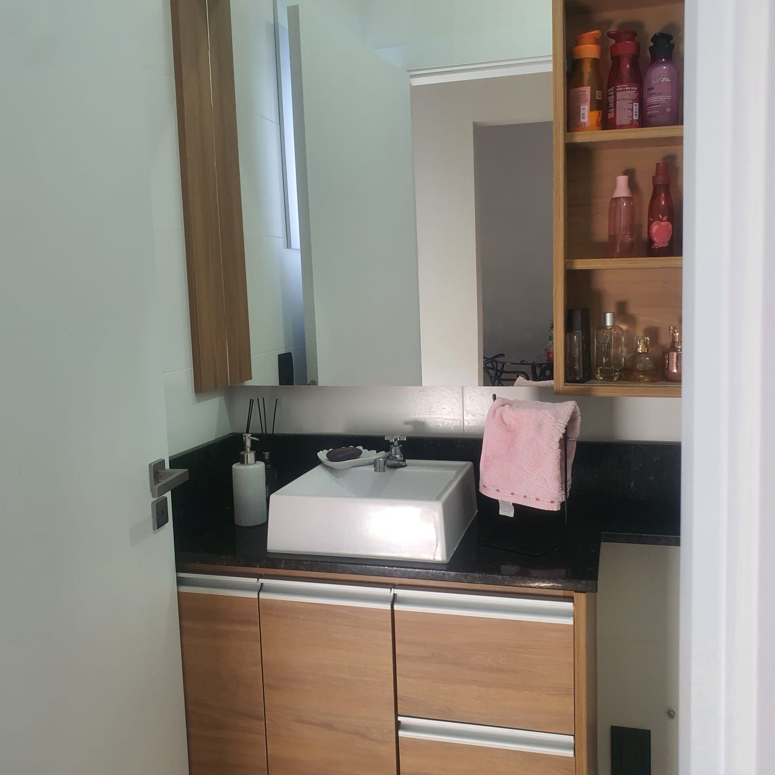 O primeiro banheiro possui armários sob medida, box de vidro, é arejado, iluminado e totalmente revestido em cerâmica.