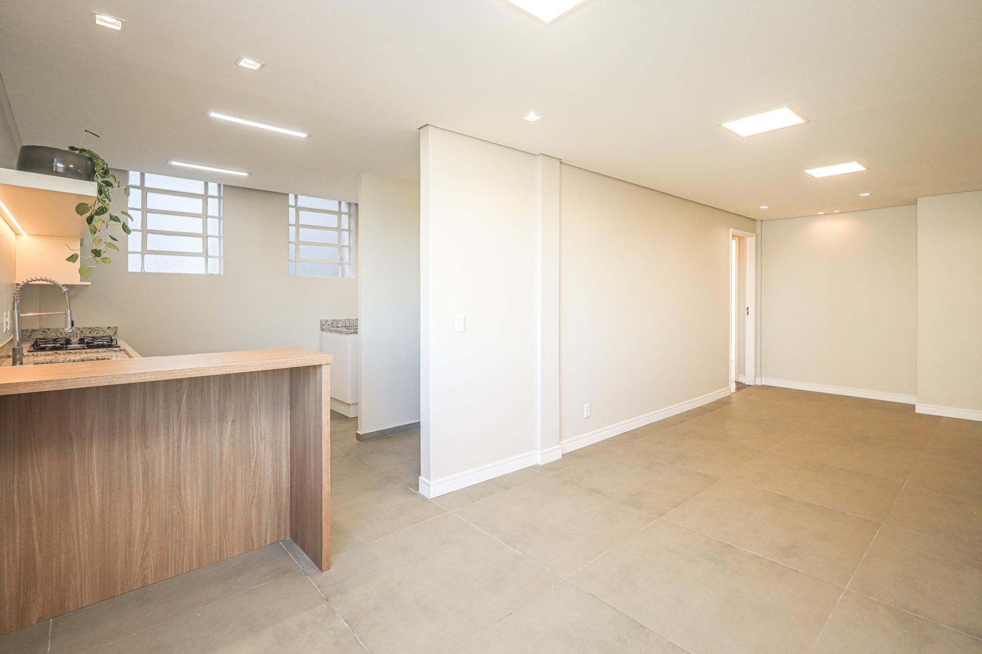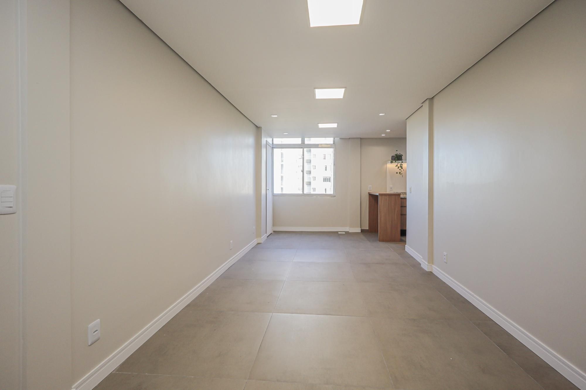 Apartamento reformado em andar alto semimobiliado com 80 m² de área privativa com 3 dormitórios com sacada, banheiro social com ventilação natural, lavabo, living amplo para 2 ambientes, ótima iluminação, posição solar leste, cozinha americana montada com área de serviço.