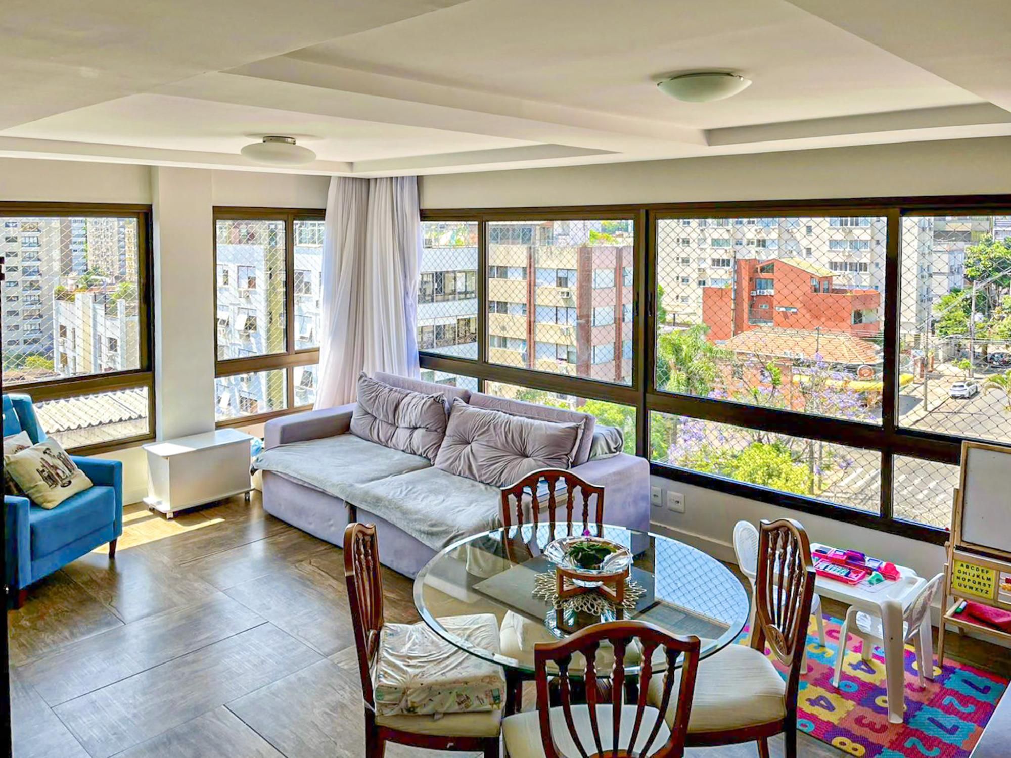 Apartamento em andar alto de frente, semimobiliado com 83 m² de área privativa com 2 dormitórios sendo 2 suítes, lavabo, living para 2 ambientes, janelas amplas proporcionando ótima iluminação e visita panorâmica, cozinha planejada americana com churrasqueira e área de serviço individual. Possui 2 vagas de garagens lado a lado cobertas e escrituradas.
