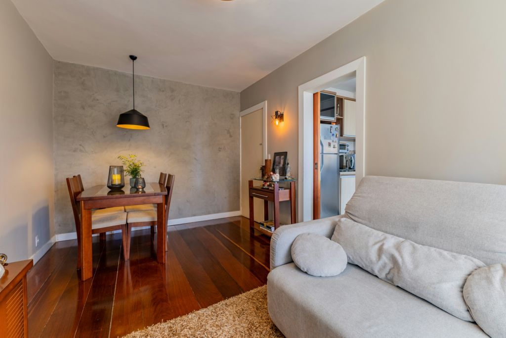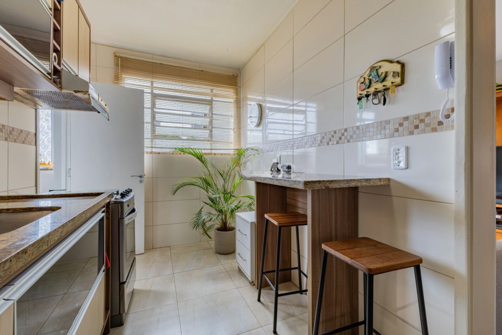 A área social é composta por uma sala espaçosa, ideal para dois ambientes, perfeita para receber e relaxar com conforto. Totalmente reformado, o apartamento se destaca pelo ambiente silencioso e pela ótima iluminação natural, com incidência do agradável sol da tarde.