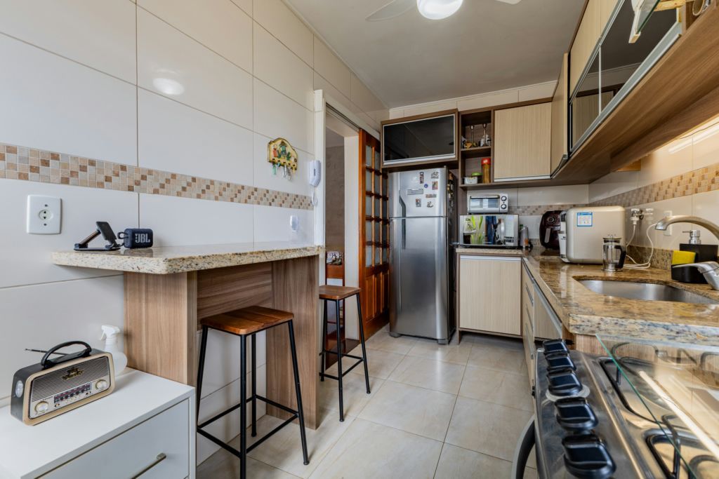 A cozinha é ampla e funcional, contando com área de serviço independente e dependência auxiliar, trazendo mais praticidade ao dia a dia.