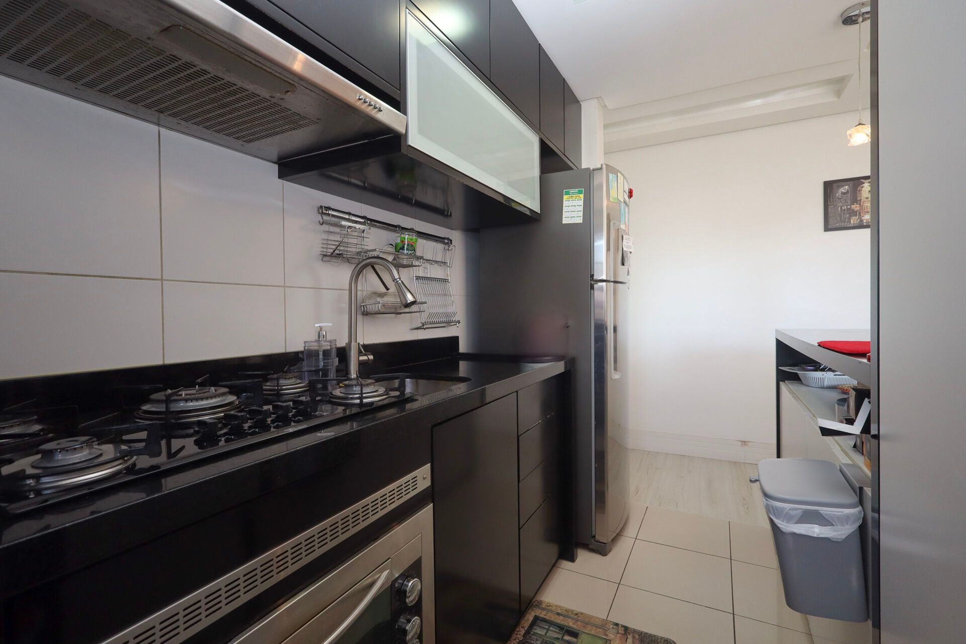 Apartamento semimobiliado com 68 m² de área privativa com 3 dormitórios sendo 1 suíte, banheiro social, living amplo para 2 ambientes, cozinha americana planejada com churrasqueira. Possui 1 vaga de garagem.