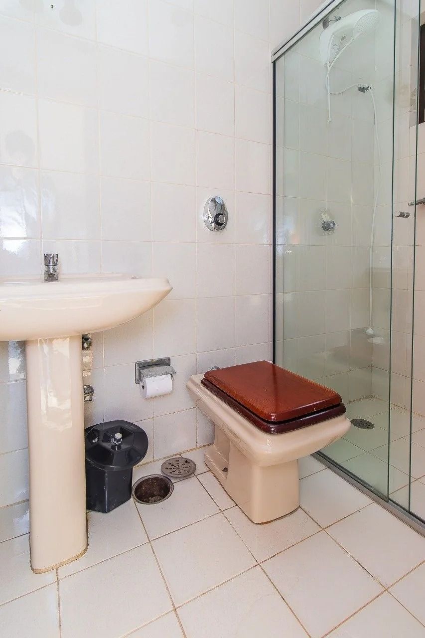 No pavimento superior, o imóvel dispõe de um excelente espaço social, com possibilidade de sala de estar e TV com lareira, sala de jantar, espaço gourmet integrado e banheiro social, além da possibilidade de criação de um dormitório adicional. Conta ainda com amplo terraço, piscina de ótimo tamanho, muito ensolarada, e churrasqueira, oferecendo conforto e lazer ao novo morador.