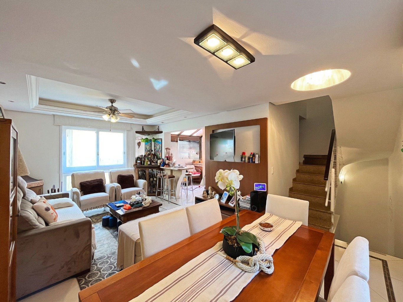 Linda casa, com excelente padrão construtivo, em condomínio fechado no bairro Tristeza, possui living em 2 ambientes, com lareira e lavabo. Ampla cozinha planejada, com área de serviço separada.