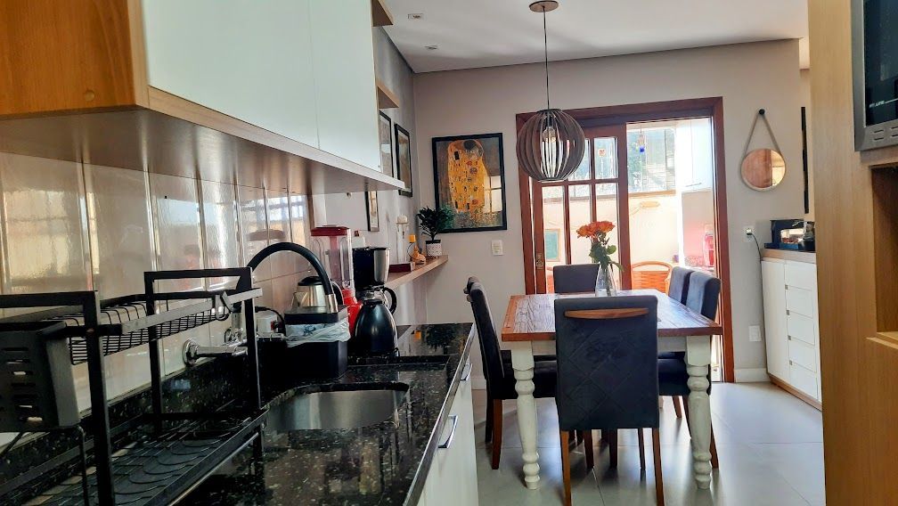Além disso, a casa possui área de serviço, lavabo e banheiro social completo com box e armários. Destaca-se também a vaga de garagem coberta, com capacidade para 2 carros.