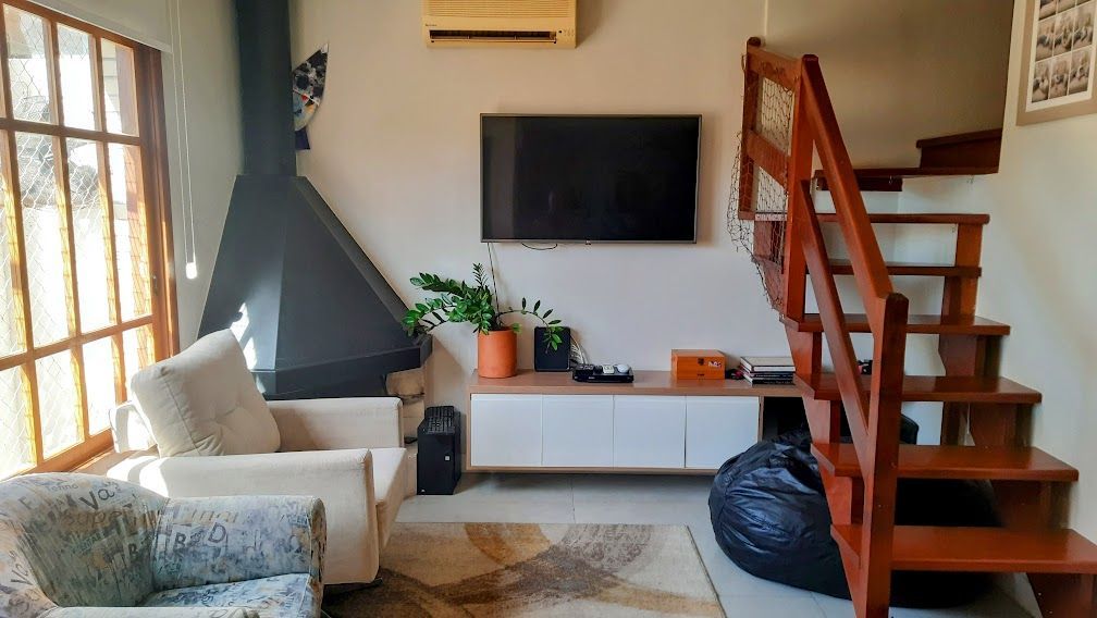 Privacidade e comodidade aos moradores, living 2 ambientes e está totalmente mobiliado, com ar condicionado split, lareira proporcionando um espaço acolhedor e convidativo para receber visitas ou desfrutar de momentos em família.