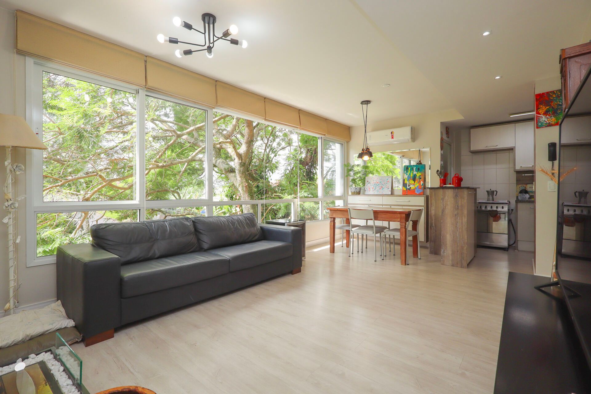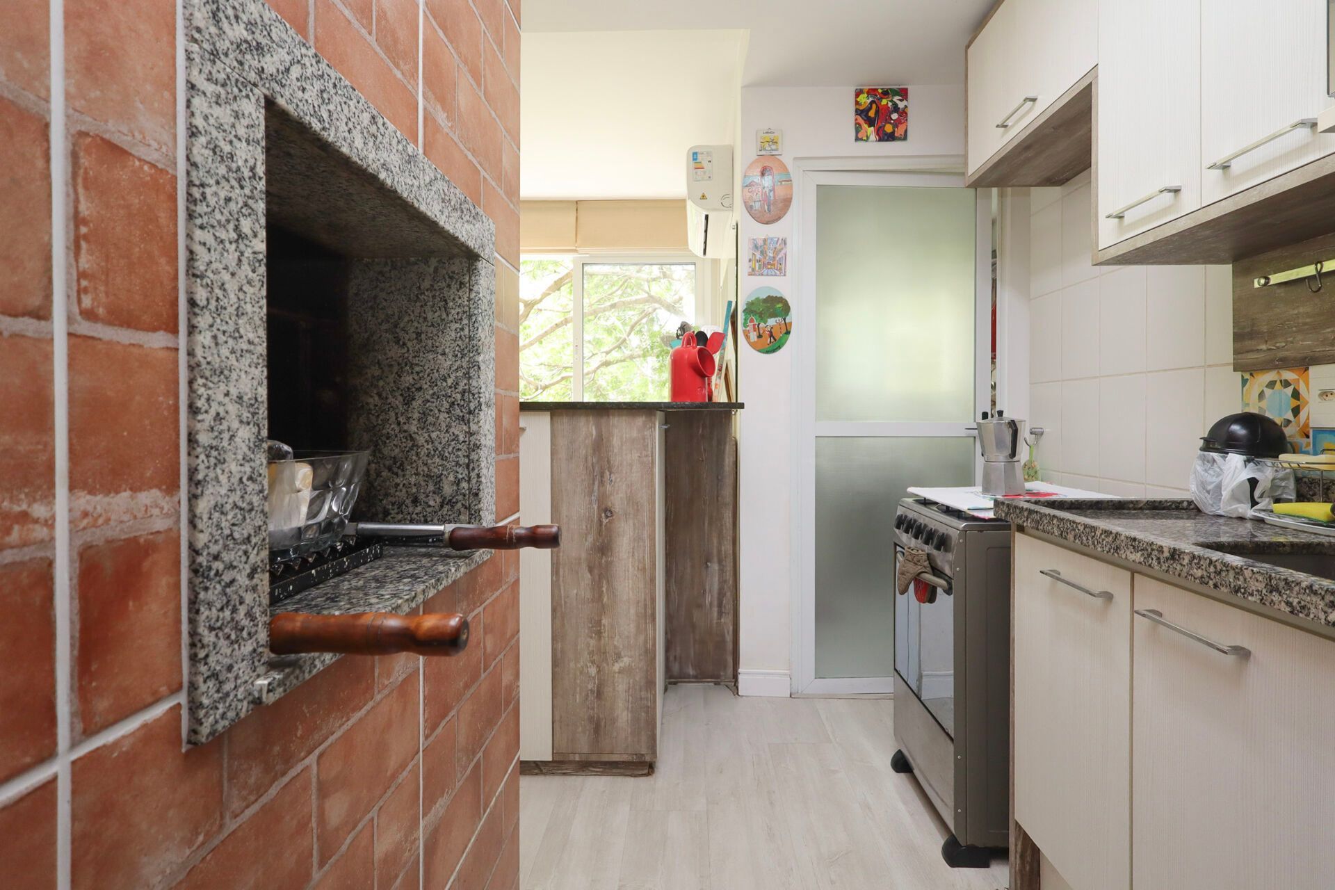 Apartamento semimobiliado com 66 m² de área privativa com 2 dormitórios sendo 1 suíte, banheiro social com ventilação natural, living para 2 ambientes com janelas amplas proporcionando ótima ventilação, cozinha americana montada com churrasqueira e área de serviço individual. Possui 2 vagas de garagem cobertas e escrituradas.