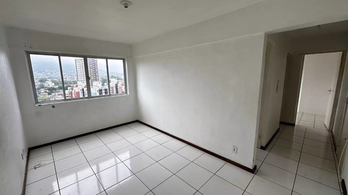 A sala é ampla, arejada e bem iluminada, com janelas grandes e piso em cerâmica.